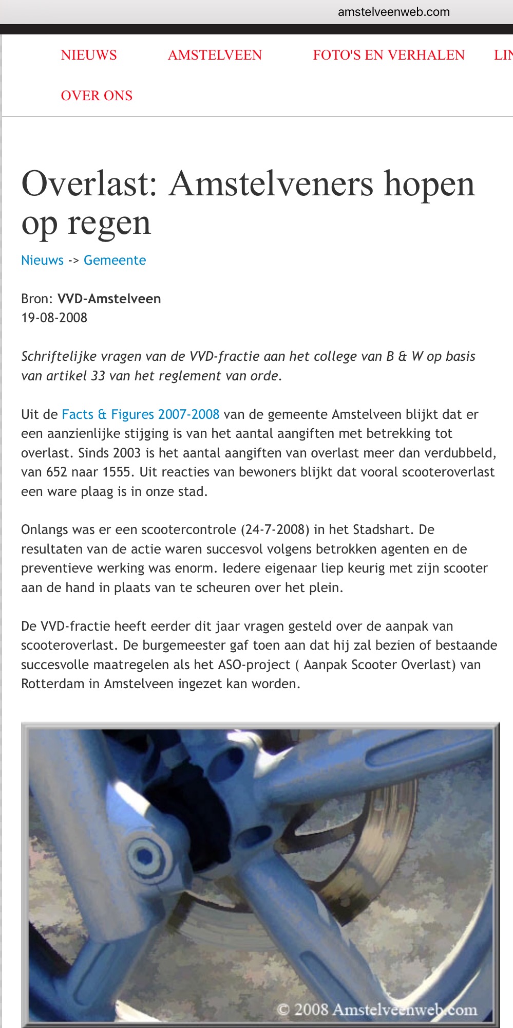 Scootersrijders in Amstelveen die er een bende van maken worden aangepakt. De VVD is blij met de beslissing van B&W. De afgelopen jaren hebben VVD fractievoorzitter Hans Bulsing en ik verschillende malen vragen gesteld over de overlast met scooters.