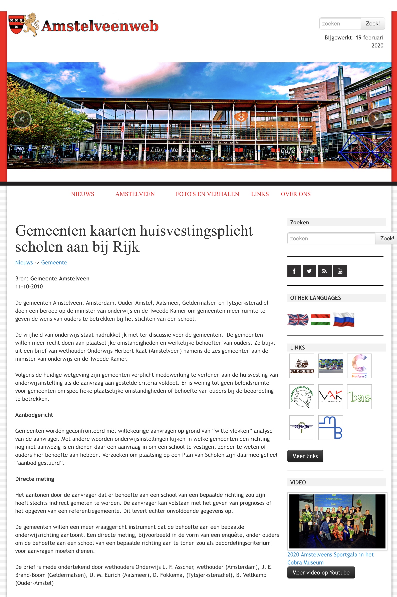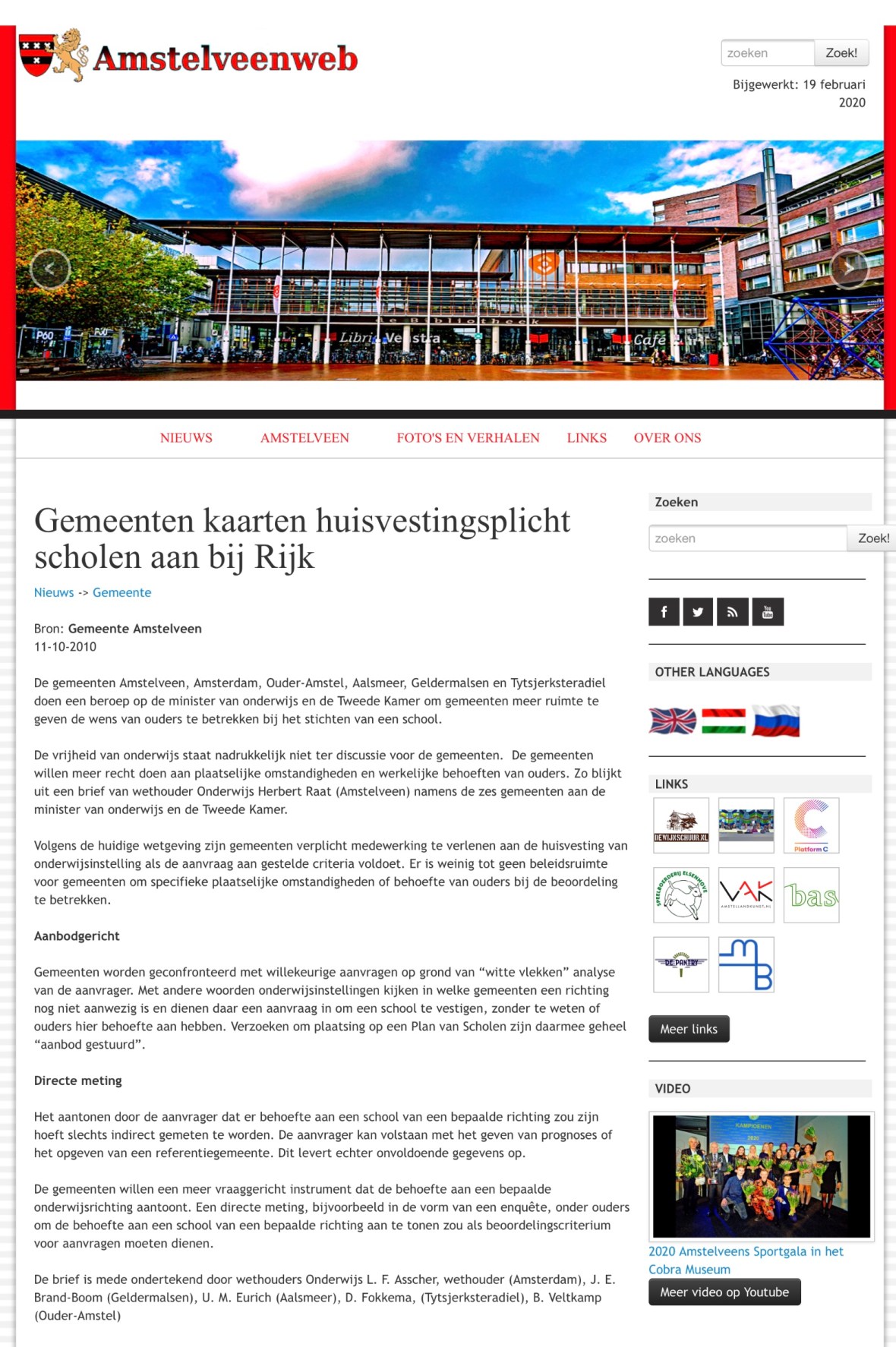 2010-11-10; Amstelveenweb.com: Brief Herbert Raat, Lodewijk Asscher en anderen aan de Tweede Kamer over huisvestingsplicht onderwijs. Dit delen:TweetVind-ik-leuk Aan het laden...