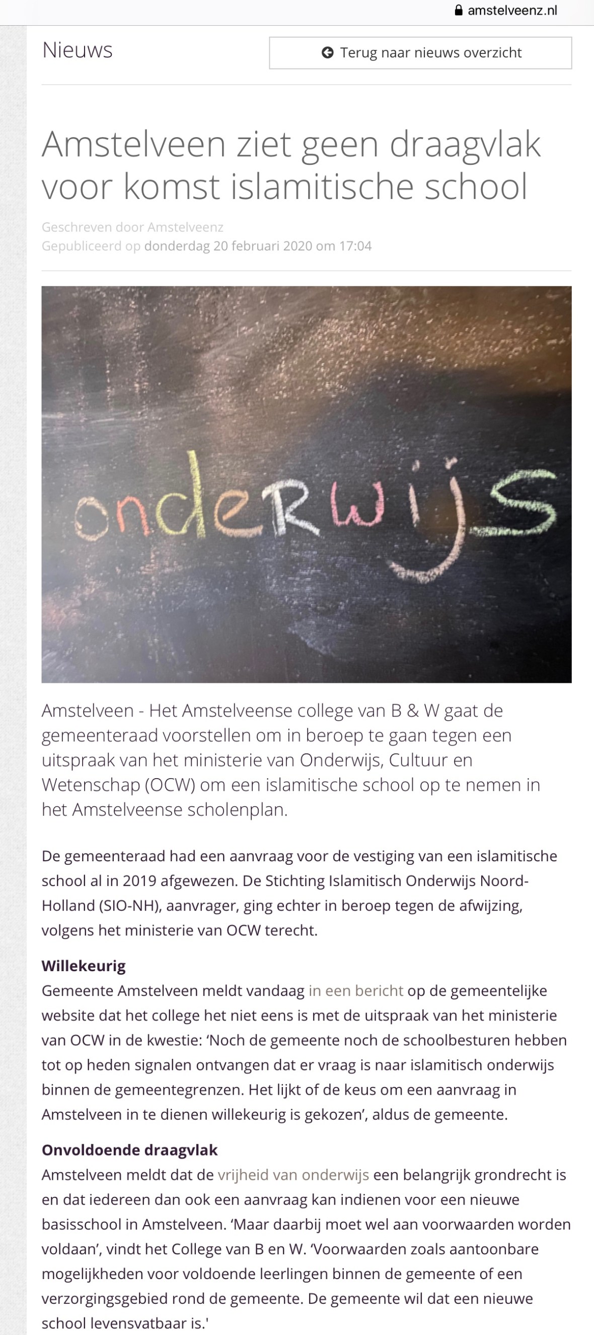2020-20-2: AmstelveenZ; Herbert Raat over afwijzen aanvraag islamitisch onderwijs in Amstelveen 1 van 2 Dit delen:TweetVind-ik-leuk Aan het laden...