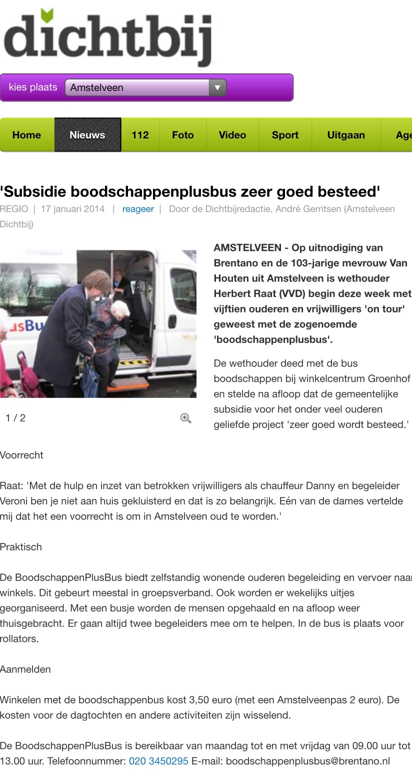 UPDATE 23-11-2013: Woensdag mocht ik weer bij mevrouw Van Houten op visite omdat ze 103 is geworden. Ze woont nog zelfstandig en doet iedere week boodschappen met de BoodschappenPlusBus, binnenkort ga ik een keer met haar, zie voor foto’s en mediaberichten hieronder en lees HIER het verslag.