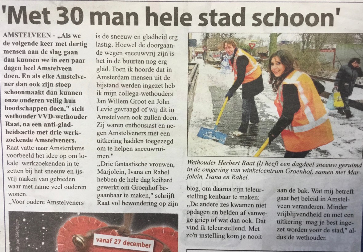 2010-29-12; Amstelveens Nieuwsblad: Herbert Raat over iets terug doen voor de bijstandsuitkering; aan de slag met Rahel Abraham,, Ivana en Marjolein Dit delen:TweetVind-ik-leuk Aan het laden...