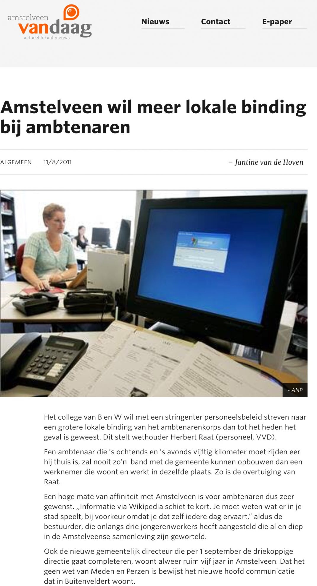 2011-11-8 Herbert Raat in het Amstelveens Nieuwsblad over lokale binding ambtenaren 1 van 2 Dit delen:TweetVind-ik-leuk Aan het laden...