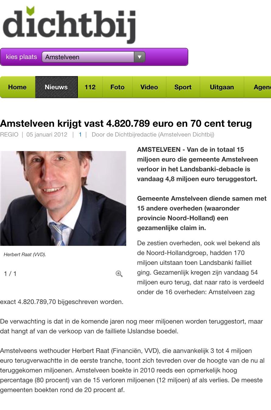 Amstelveen en andere gemeenten zijn preferent. In gewoon Nederlands: we zien nog iets terug van ons geld uit de boedel.Nu is de behandeling bij de Hoge Raad. Voor Amstelveen, de provincie en andere gemeenten erop of eronder. Als we winnen zien we nog een aanzienlijk deel van ons geld terug en anders niet.