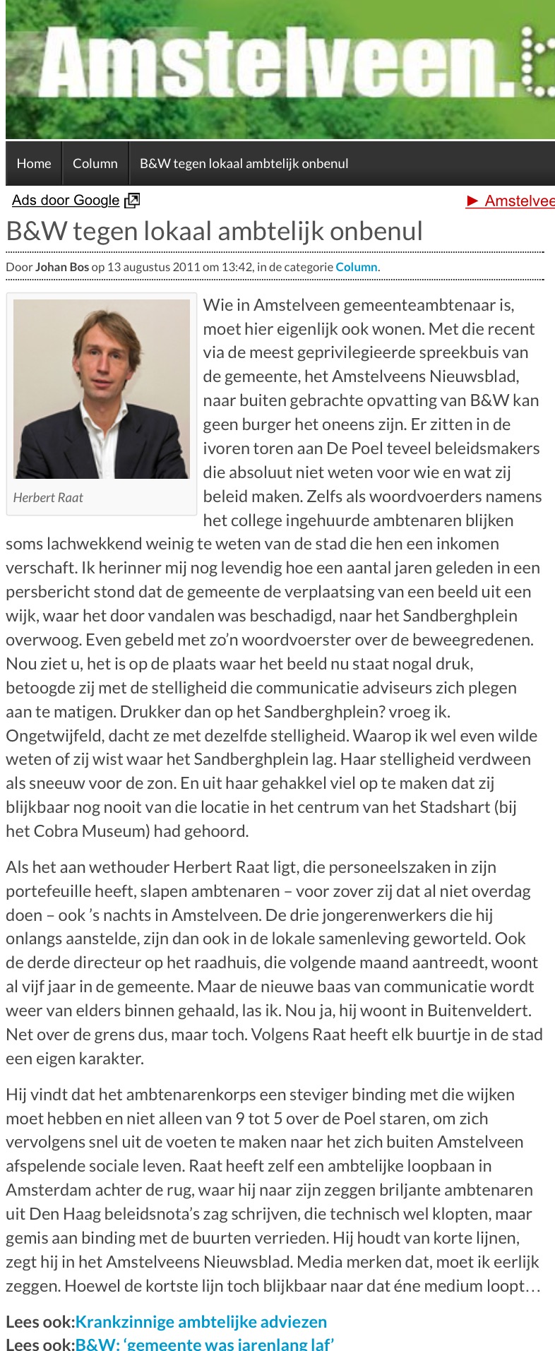 Betekent dit nu dat ik alleen Amstelveners in dienst wil hebben? Nee, maar ik heb al eerder gepleit voor meer betrokkenheid van ambtenaren bij onze gemeente. Gelukkig zie ik die betrokkenheid op alle afdelingen.