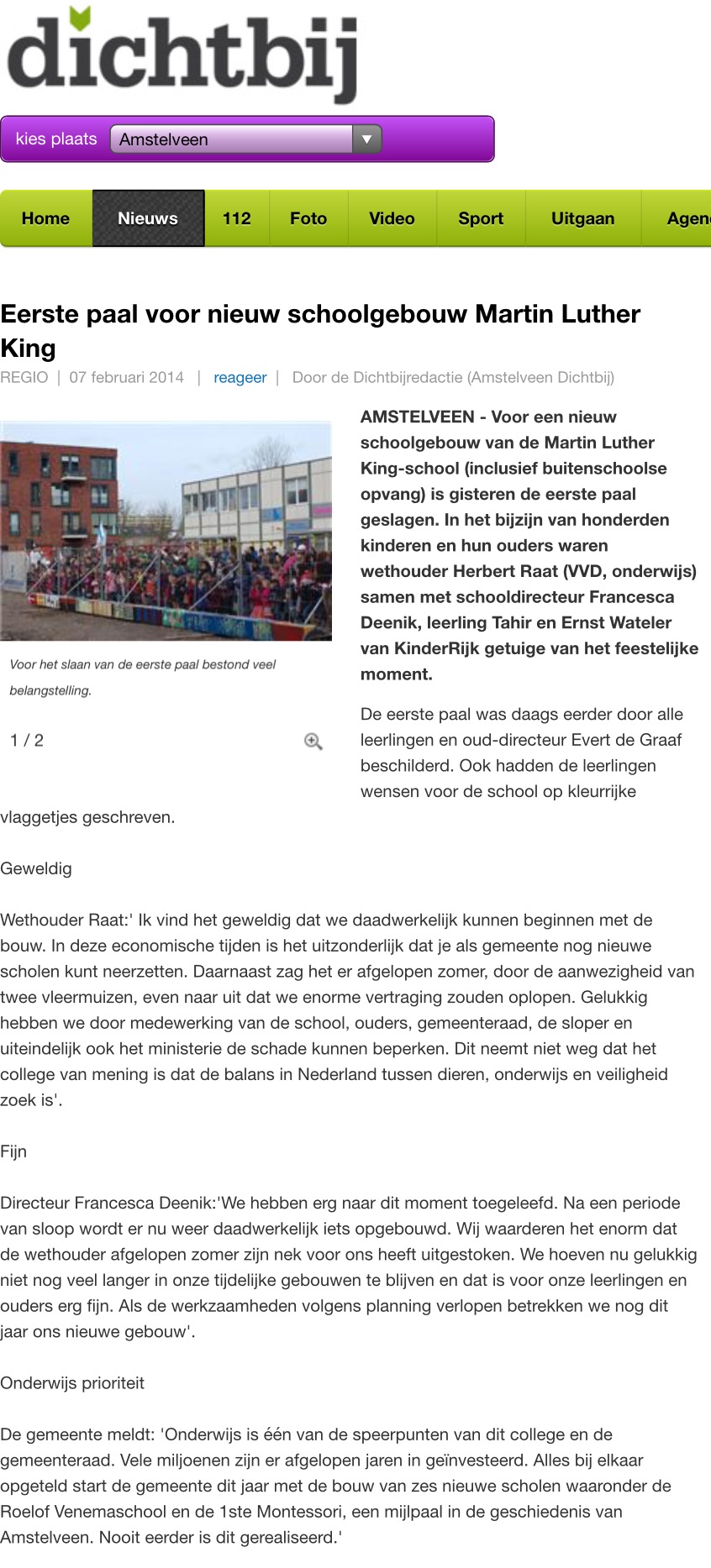 Als vader van twee kinderen op de Martin Luther Kingschool vind ik dit een hele goede manier van doorpakken. Hierdoor heeft men kunnen voorkomen dat asbestsloop tijdens de reguliere schooltijd plaats zou vinden en geloof mij, ik zou mijn kinderen niet naar school kunnen sturen. Mijn hele familie is opgelucht. Hartelijk dank hiervoor.