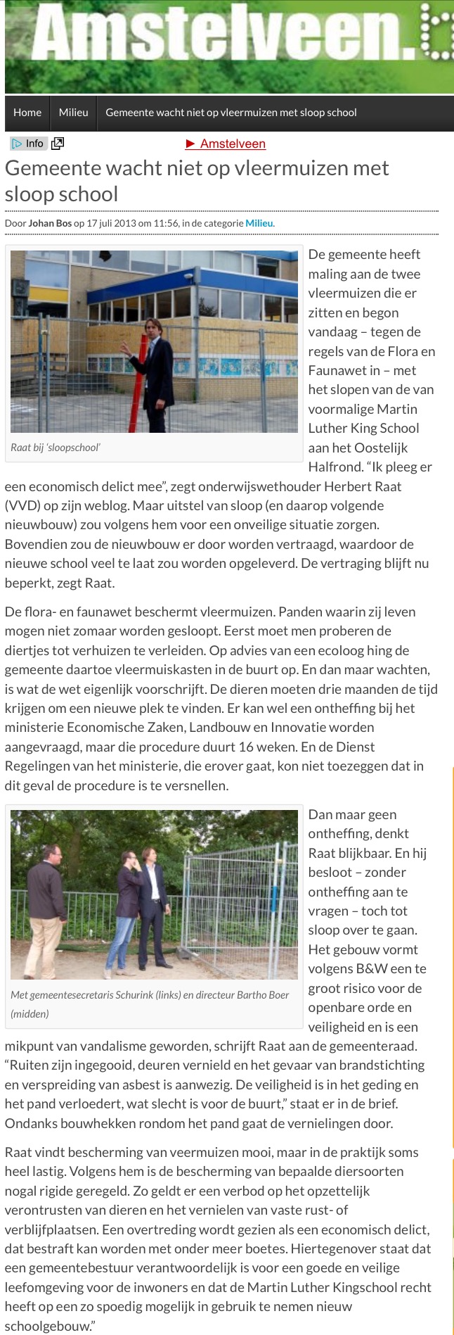 2013-17-3; Amstelveenblog.nl; over waarom Herbert Raat school sloopt ondanks vleermuizen Dit delen:TweetVind-ik-leuk Aan het laden...