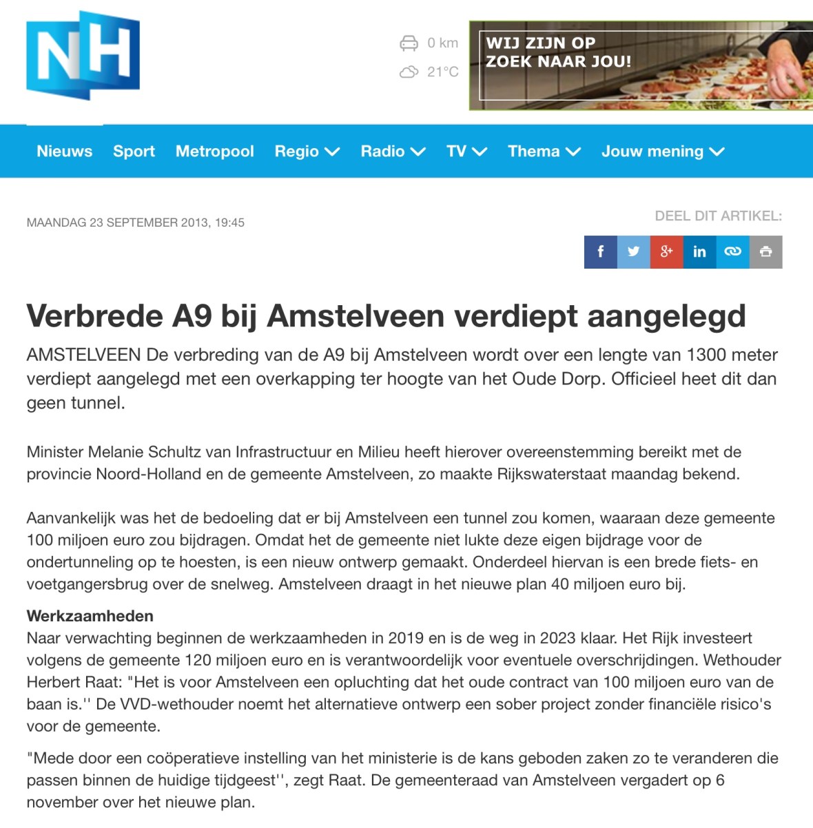 2013-23-9 RTVNH over verdiepte aanleg A9 Amstelveen