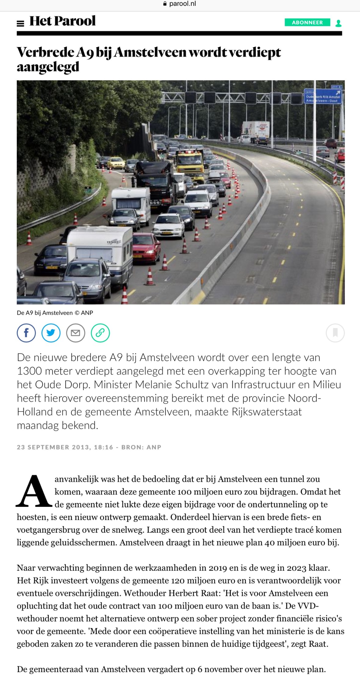 2013-23-9 Het Parool; Herbert Raat over verdiepte aanleg A9 Amstelveen Dit delen:TweetVind-ik-leuk Aan het laden...