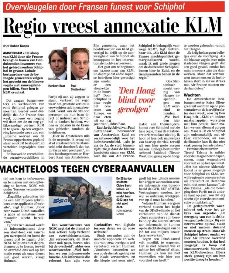 2015-15-2 De Telegraaf; Herbert Raat en Paul Slettenhaar over zorgen positie van KLM Dit delen:TweetVind-ik-leuk Aan het laden...