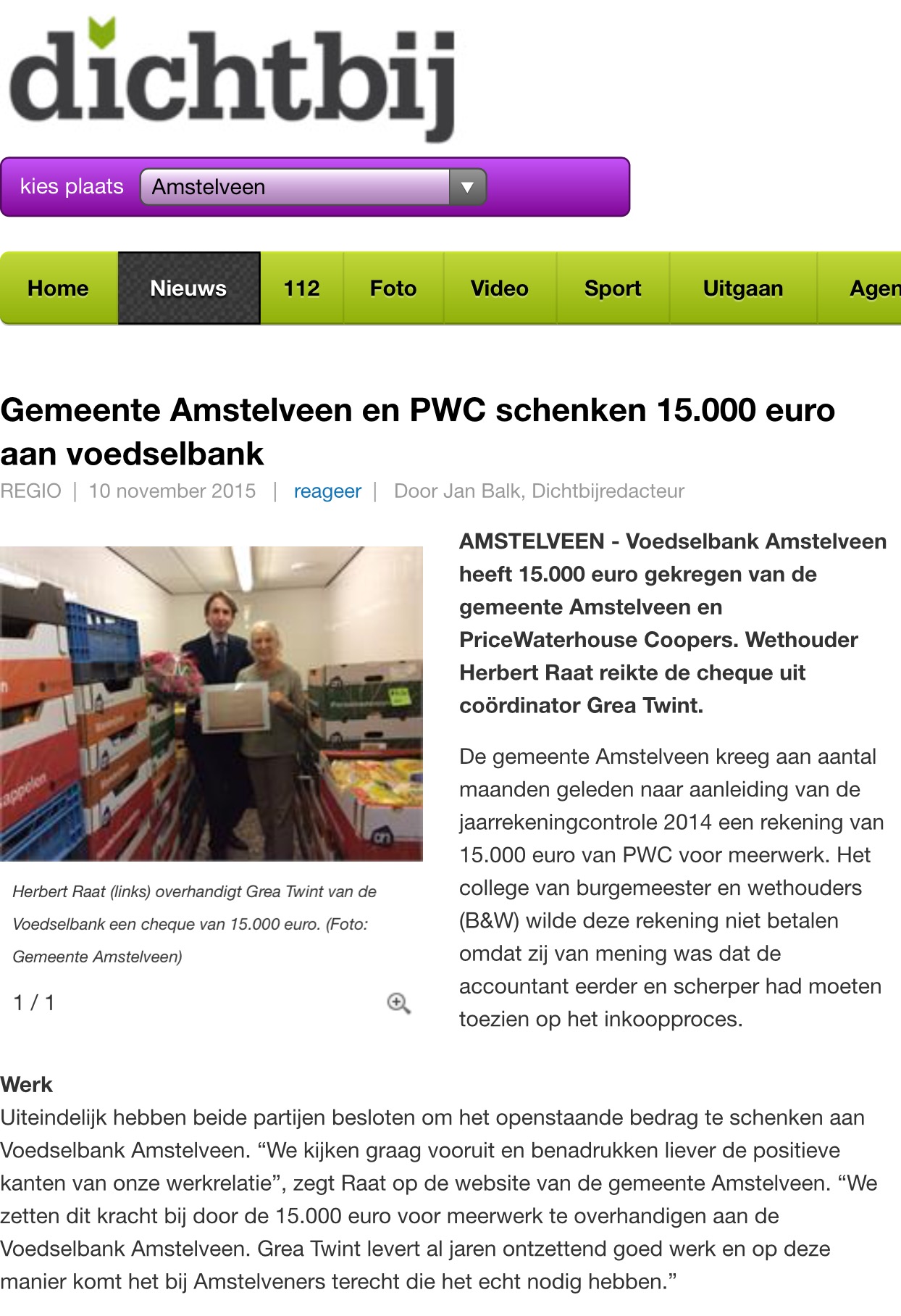 UPDATE 10 november: Akkoord met PWC, geld gaat naar de voedselbank.