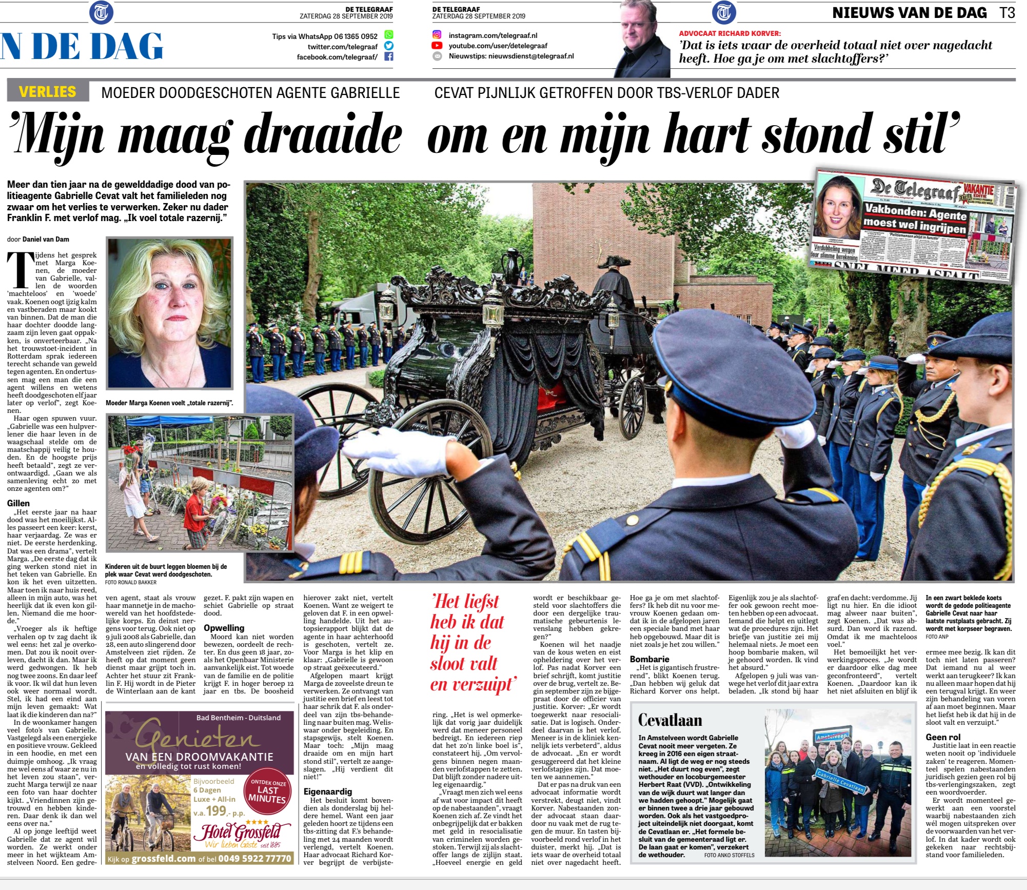 2019-28-9; Telegraaf; over proefverlof van de moordenaar van Gabrielle Cevat en Herbert Raat over straatnaam in Amstelveen Dit delen:TweetVind-ik-leuk Aan het laden...
