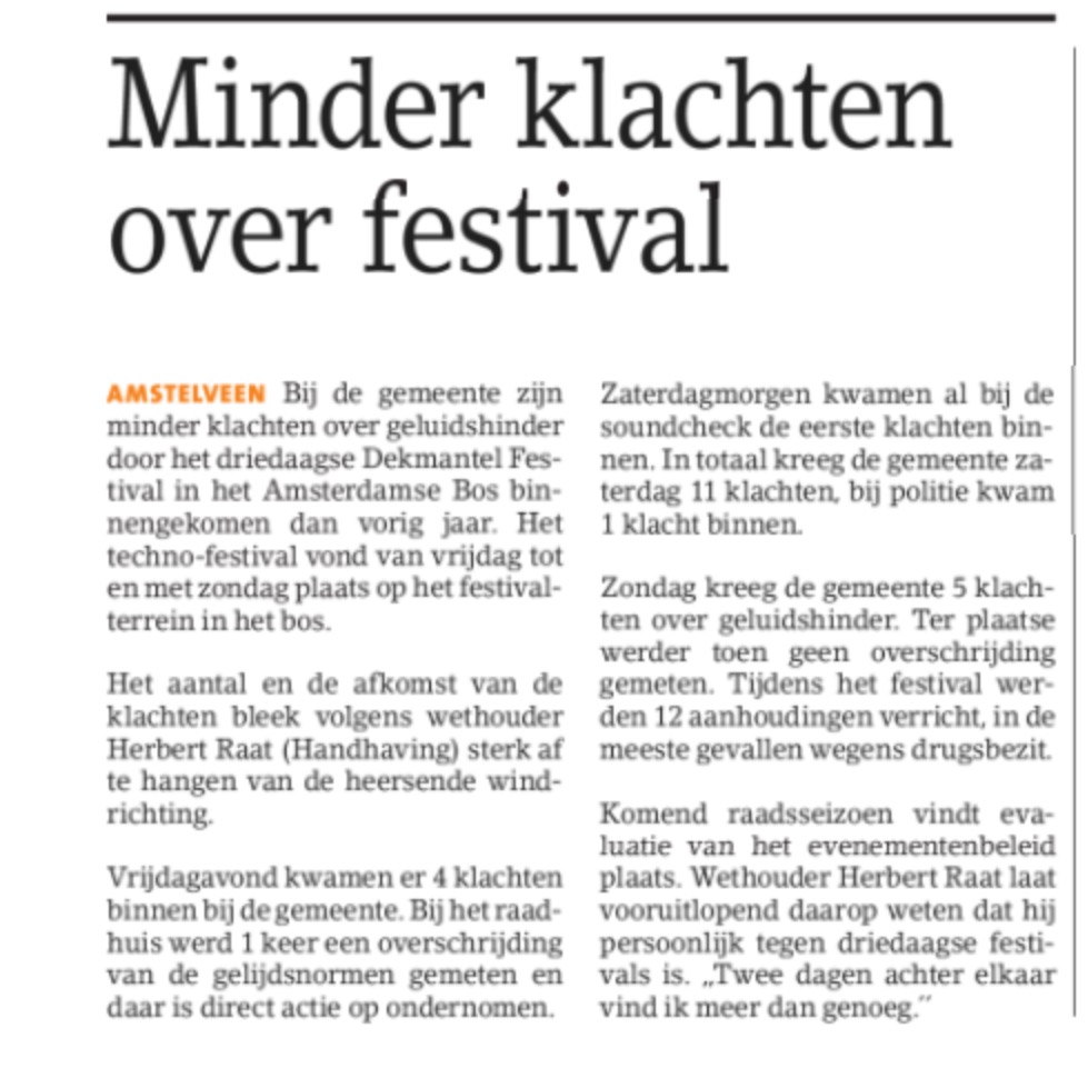 2017-9-8 Amstelveens Nieuwsblad over klachten dekmante