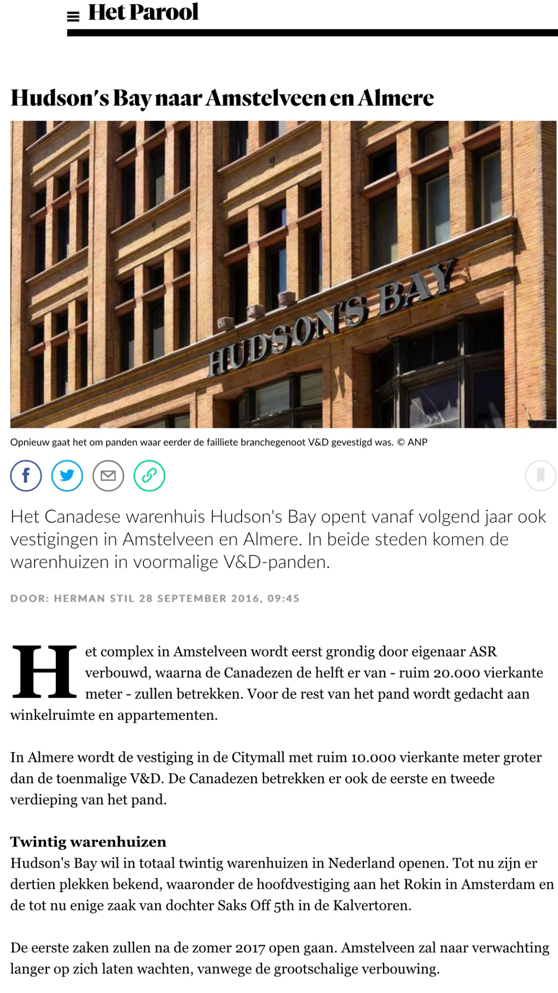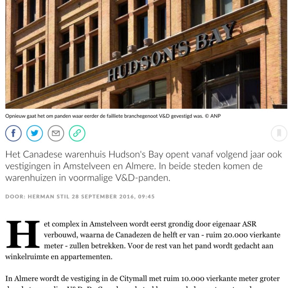 2016-28-9 Het Parool over Hudson’s Bay in Amstelveen