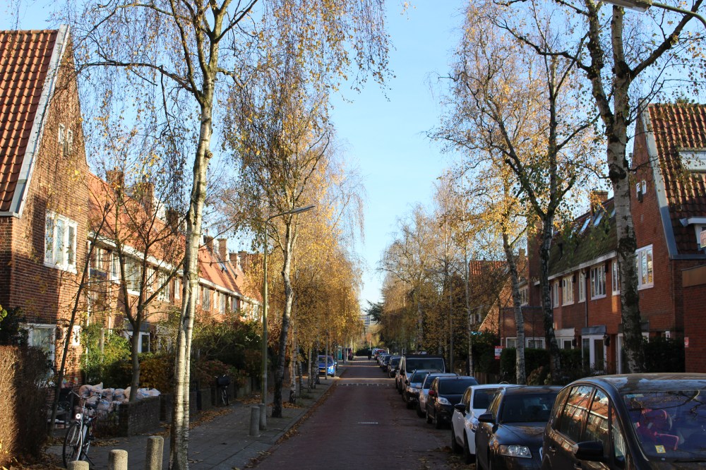 Deze foto is genomen in de Catharina van Clevelaan, met de rug naar de Amsterdamseweg.De woningen zijn gebouwd tussen 1926 en 1930. Opvallend is de toename van auto’s in het straatbeeld en de groei van de zilverberken. Deze architectuur is nog altijd geliefd: behalve de toevoeging van wat dakvensters, is er aan de architectuur niets gewijzigd.