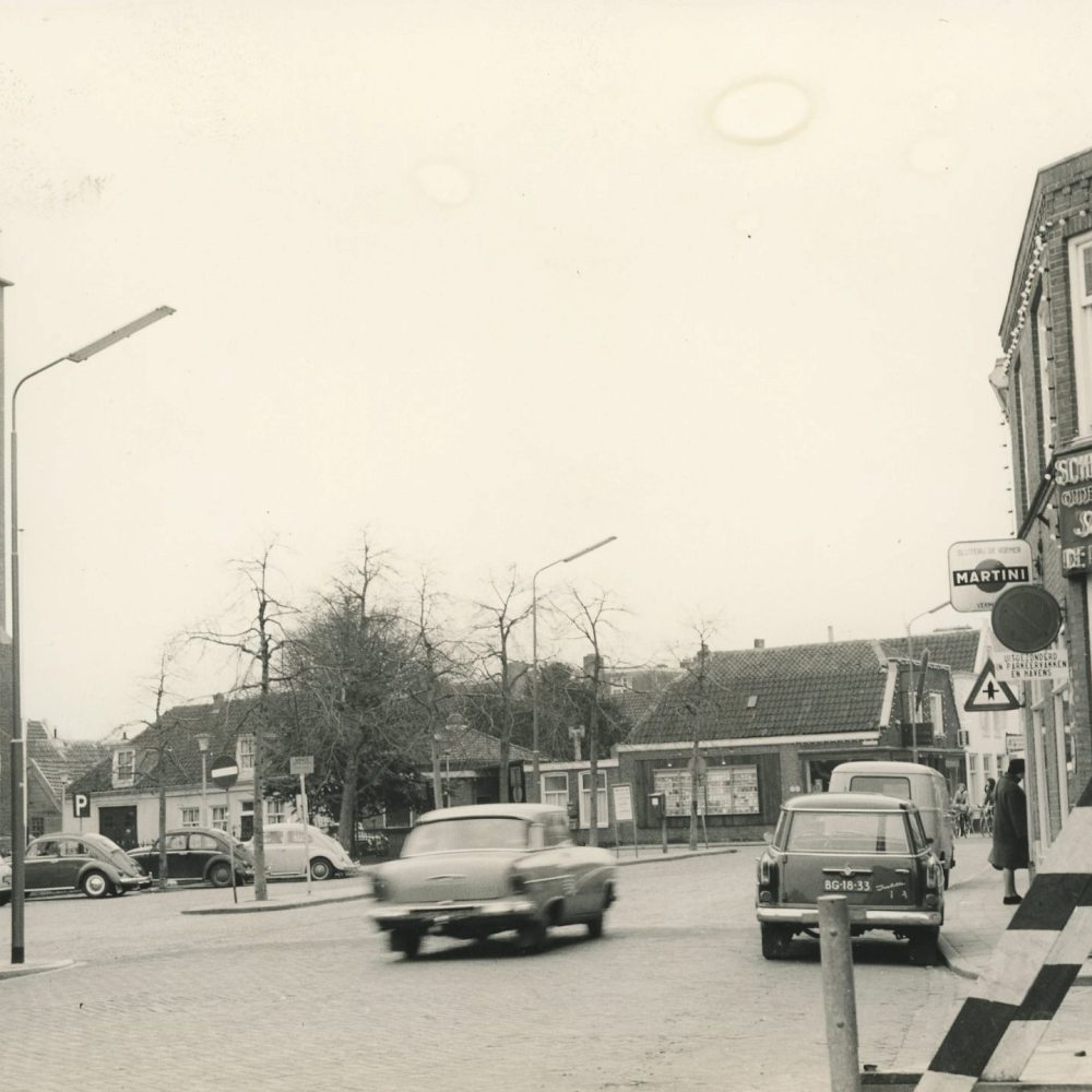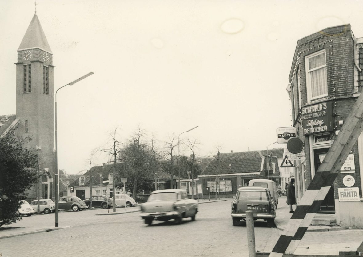 Het Dorpsplein anno 1960, met rechts slijterij De Roemer (tegenwoordig Argentijns restaurant Buenos Aires) en links de Dorpskerk. Op de hoek van de Dorpsstraat verrijst in 1992 het Van der Togtmuseum.