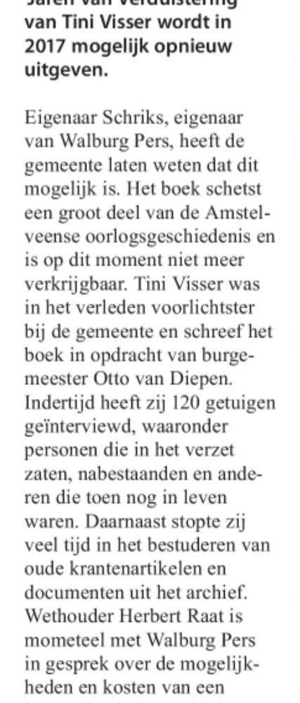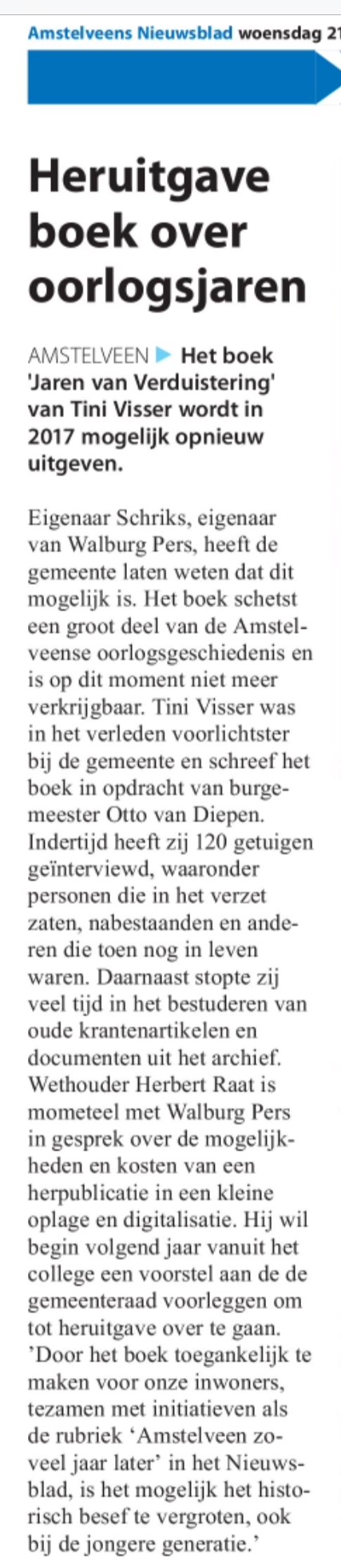 2016-21-12 Amstelveens Nieuwsblad; Herbert Raat over heruitgave boek Tiny Visser Dit delen:TweetVind-ik-leuk Aan het laden...