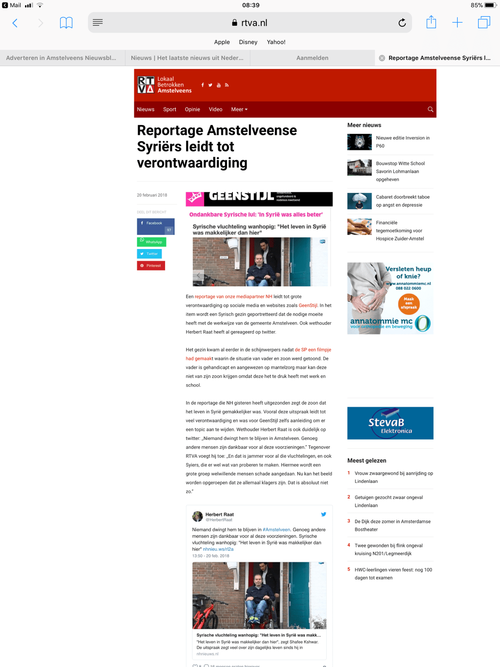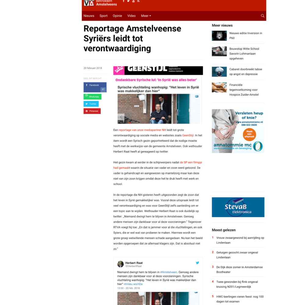 2018-20-2 RTV Amstelveen; Herbert Raat over ontevreden Syrier Dit delen:TweetVind-ik-leuk Aan het laden...