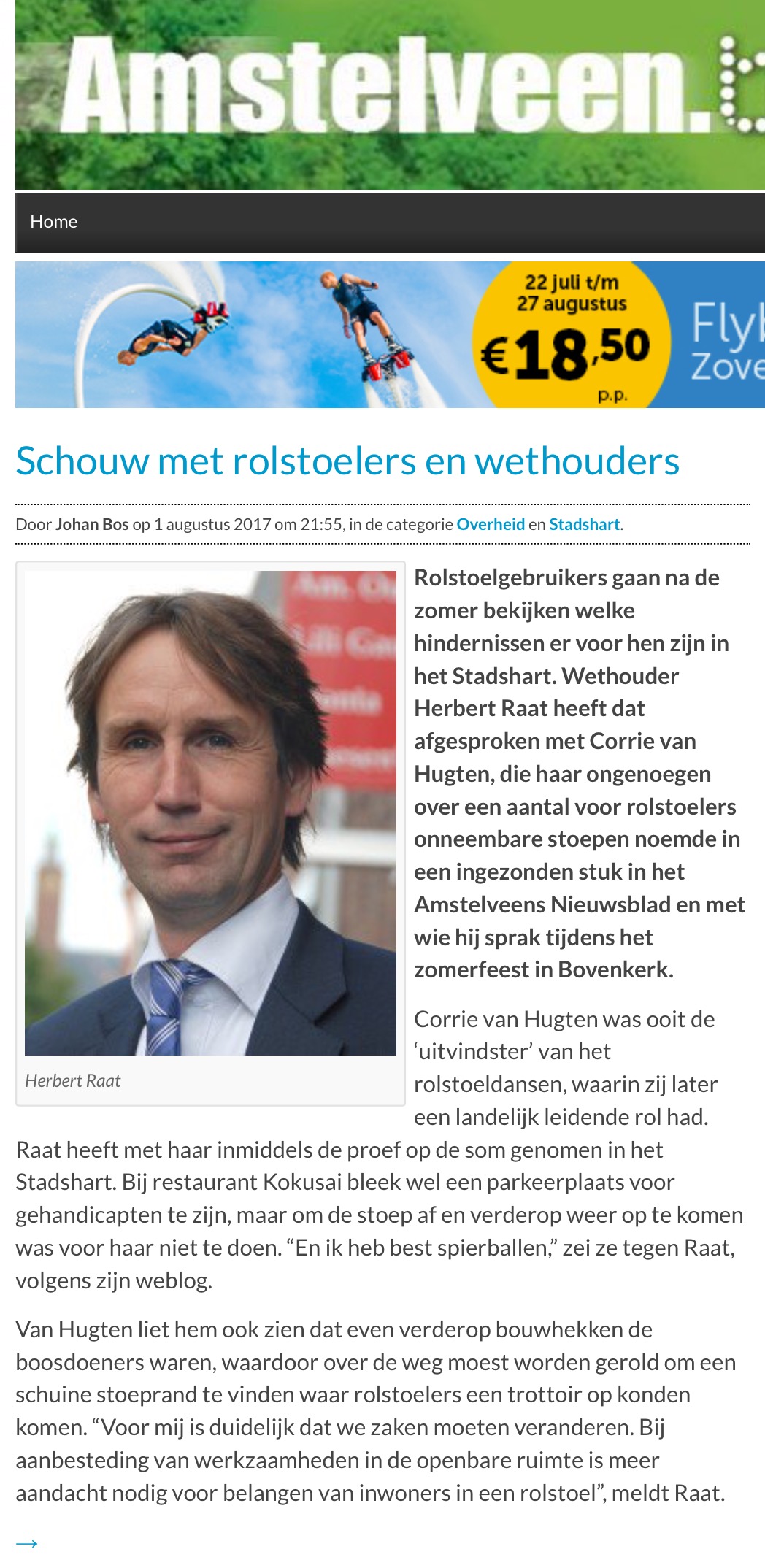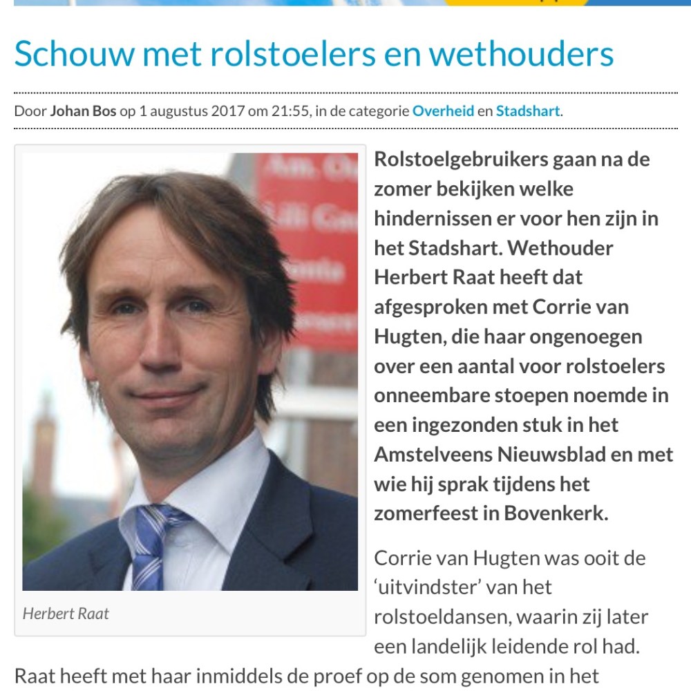 2017-1-8 AmstelveenBlog.nl over Corrie van Hugten, wethouder Herbert Raat en problemen van rolstoelers Dit delen:TweetVind-ik-leuk Aan het laden...