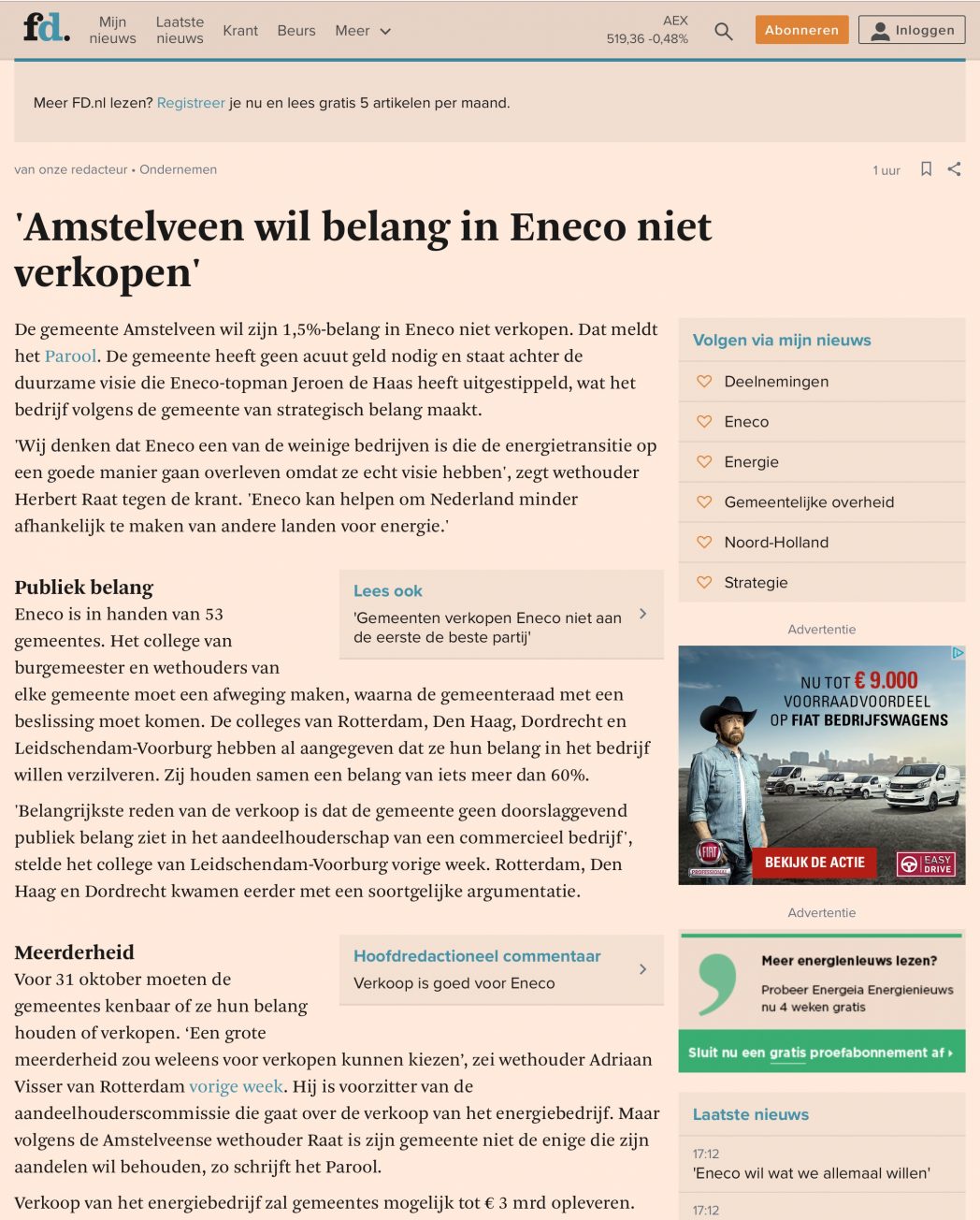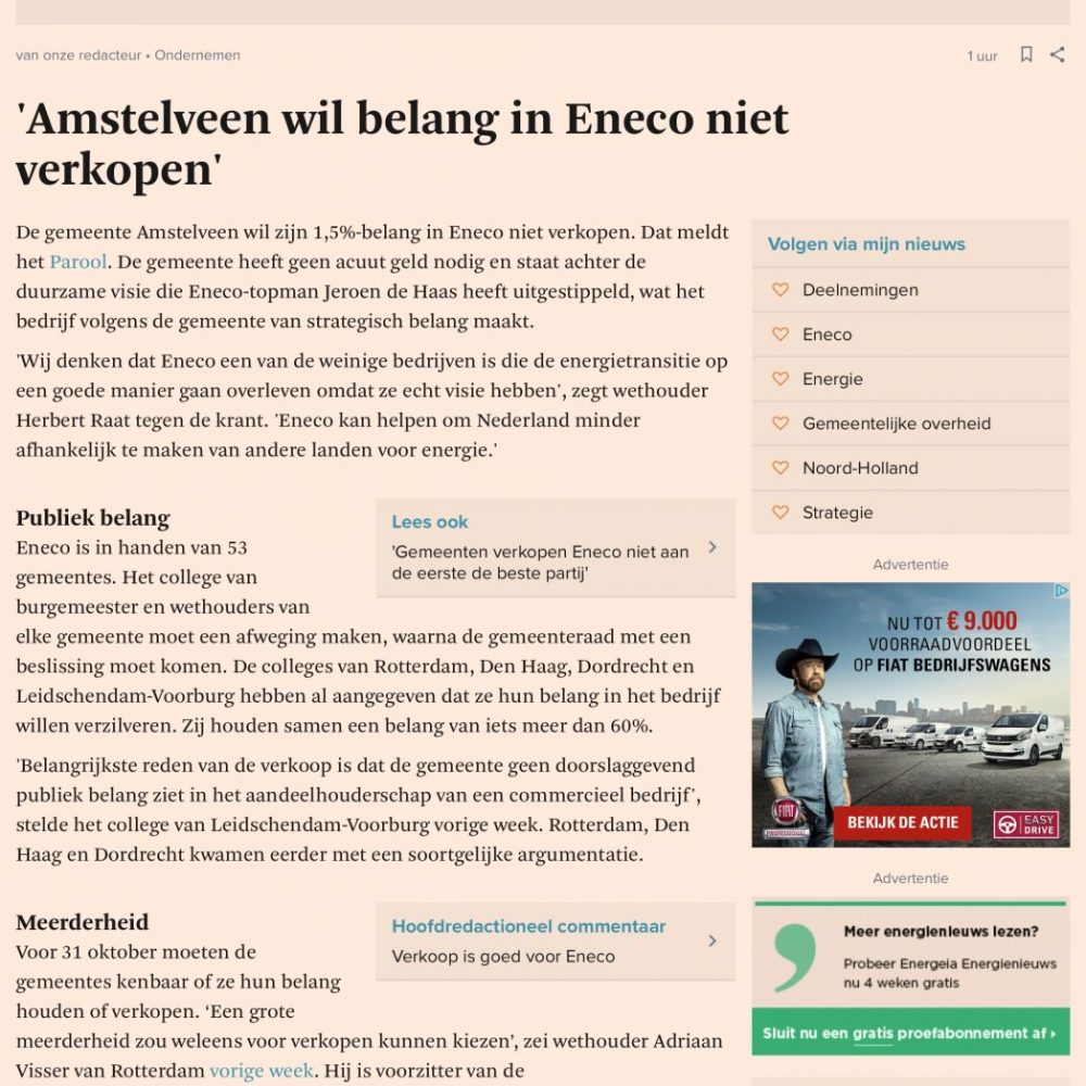 2017 23-8 FD; Herbert Raat over Amstelveen en Eneco