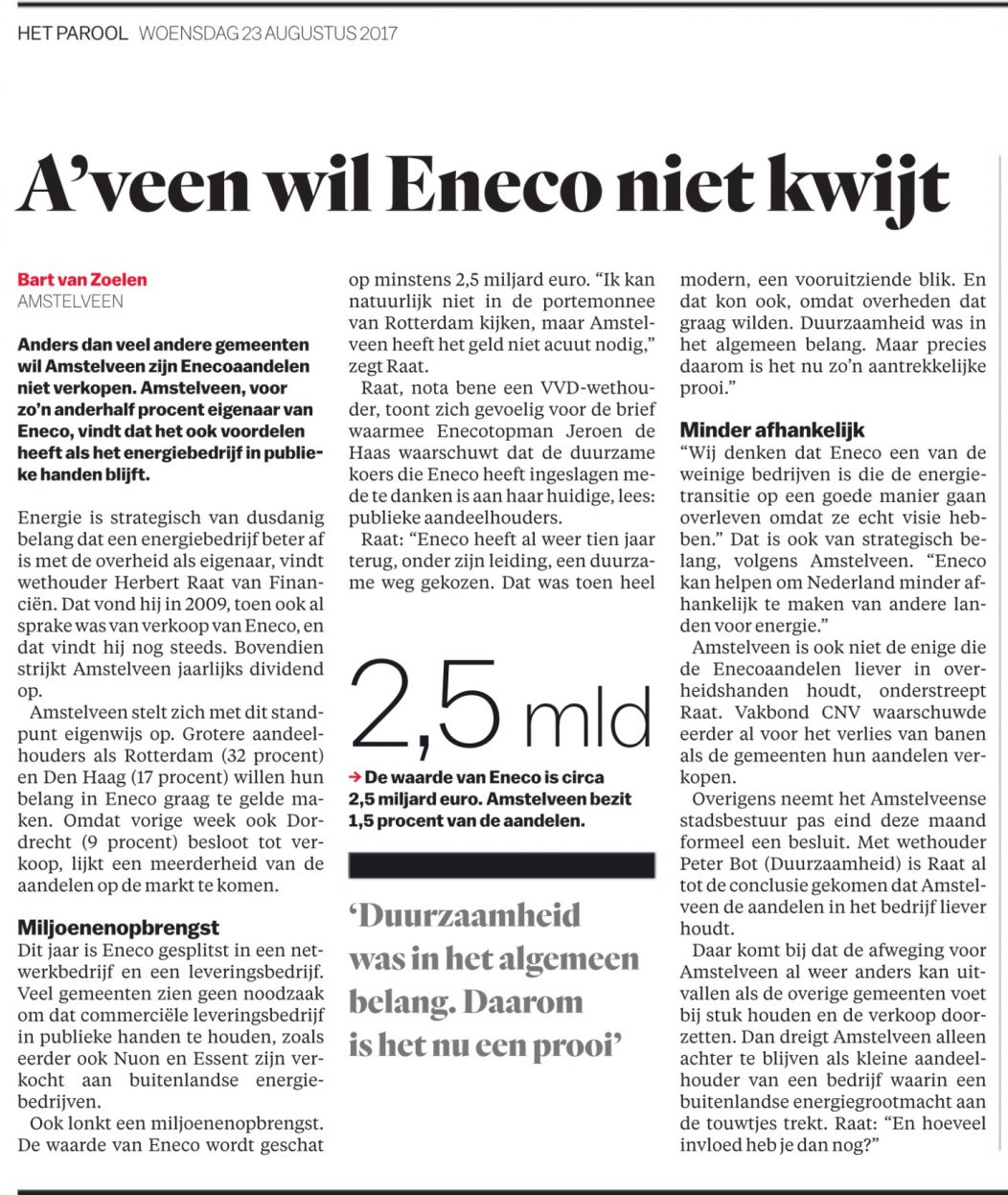 2017-23-8 Het Parool Bart van Zoelen; wethouder Herbert Raat over Amstelveen en Eneco Dit delen:TweetVind-ik-leuk Aan het laden...