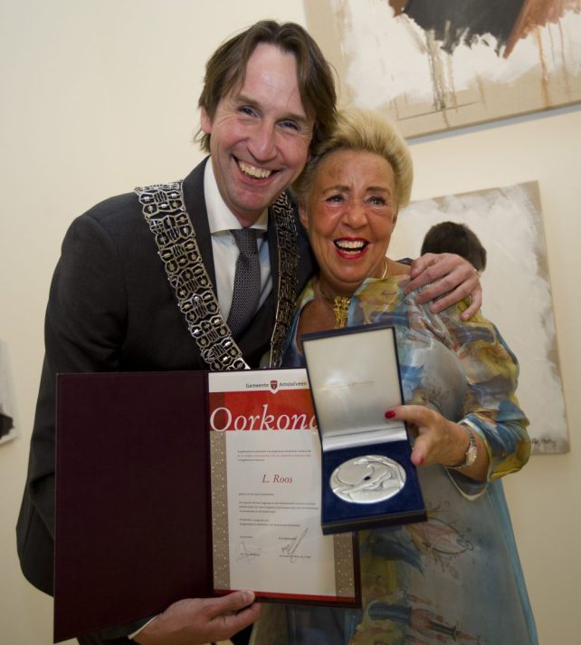 Namens het gehele college, overhandig ik jou met trots de zilveren legpenning van Amstelveen. Want wij, de Amstelveners, willen je ook bedanken. Bedanken voor je tomeloze inzet, je bijzondere persoonlijkheid en alles wat je voor Amstelveen hebt gedaan.