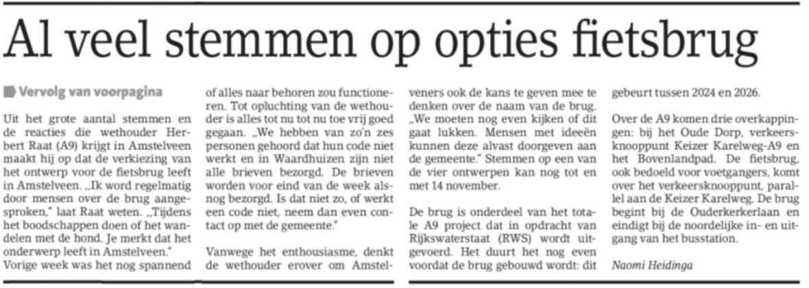 2017-Amstelveens Nieuwsblad; Herbert Raat: veel animo voor fietsbrug Amstelveen Dit delen:TweetVind-ik-leuk Aan het laden...