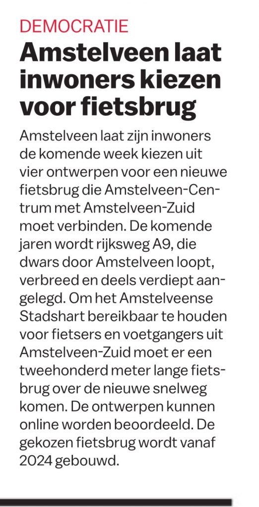 2017-4-11 Het Parool over fietsbrug