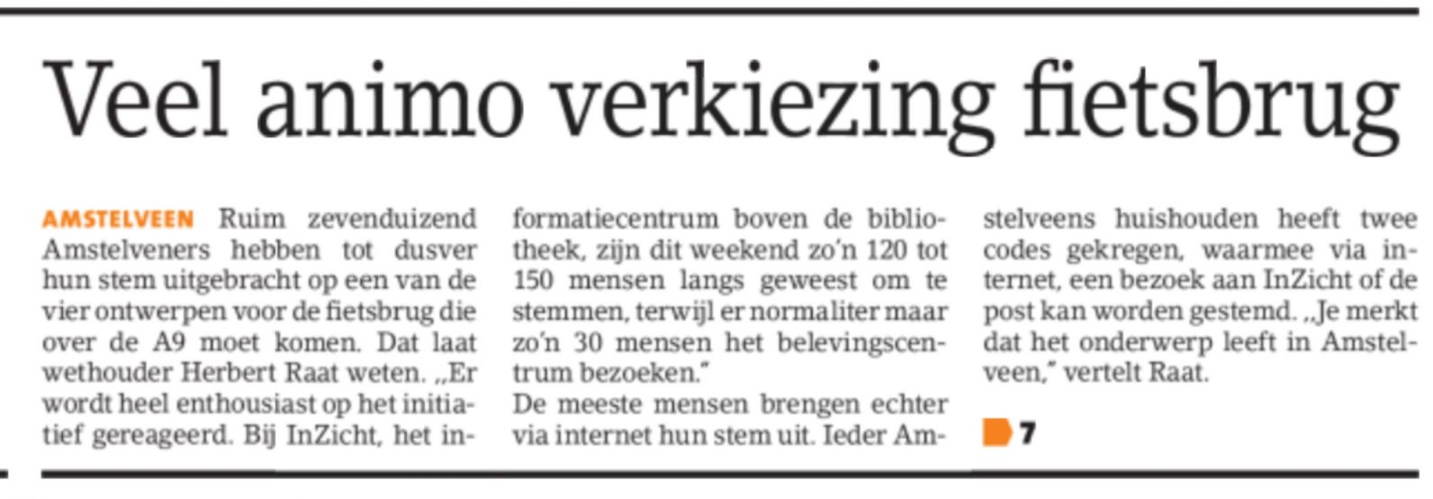 2017-Amstelveens Nieuwsblad veel animo voor fietsbrug Amstelveen Dit delen:TweetVind-ik-leuk Aan het laden...