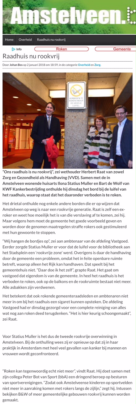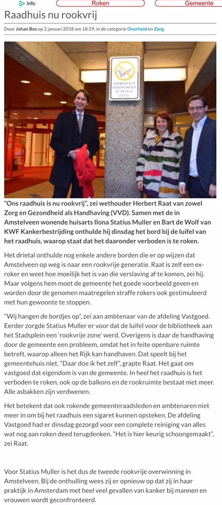 2018-2-1 Amstelveenblog.nl; Herbert Raat over rookvrij Raadhuis Amstelveen Dit delen:TweetVind-ik-leuk Aan het laden...