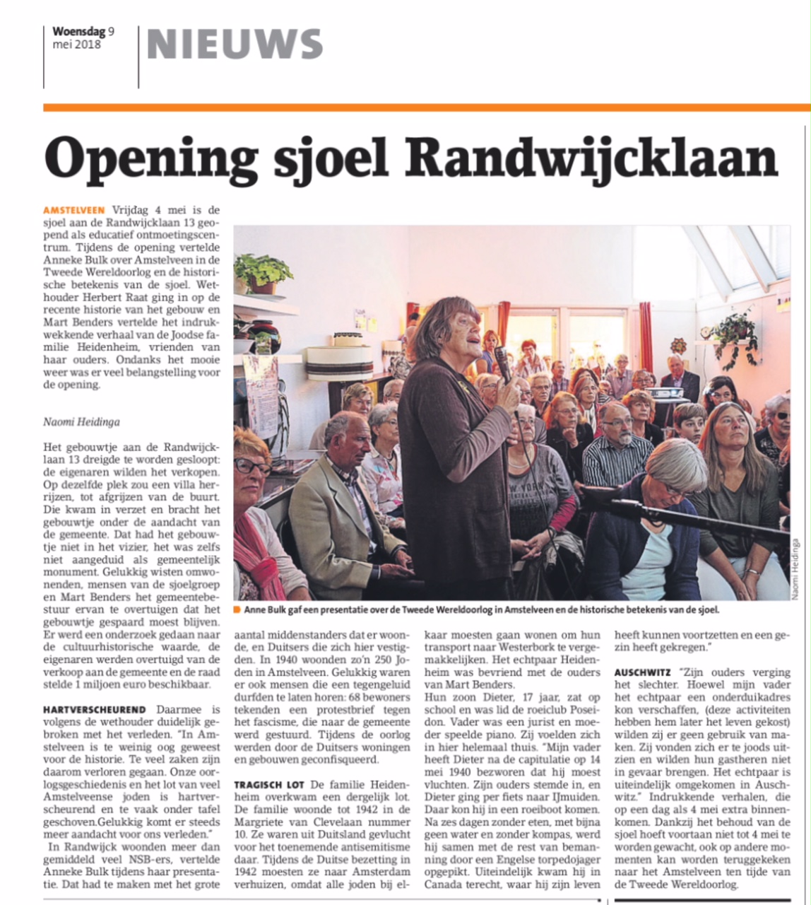 2018-9-5 Amstelveens Nieuwsblad over open Joodse huizen Anne Bilk, Mart Benders en Herbert Raat Amstelveen Randwijcklaan 13 Dit delen:TweetVind-ik-leuk Aan het laden...