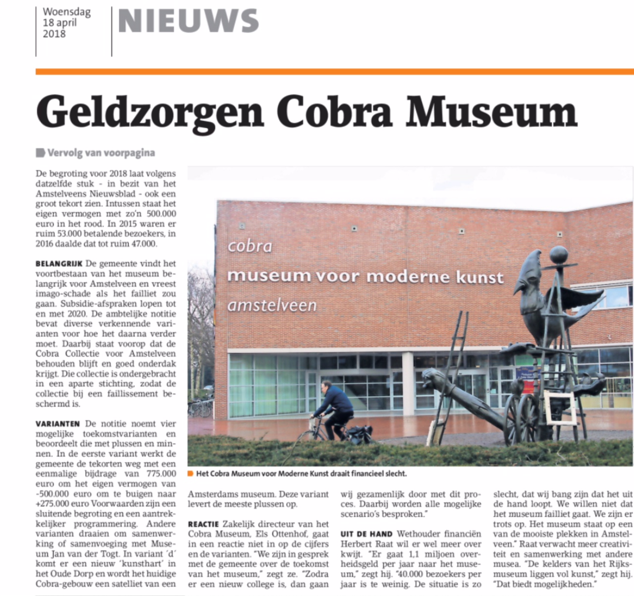2018-18-4 Voorpagina Amstelveens Nieuwsblad; wethouder Herbert Raat over financien van het Cobra museum 2-2 Dit delen:TweetVind-ik-leuk Aan het laden...