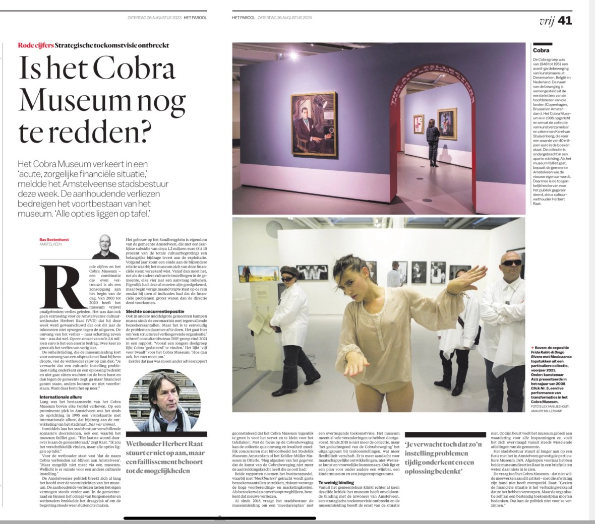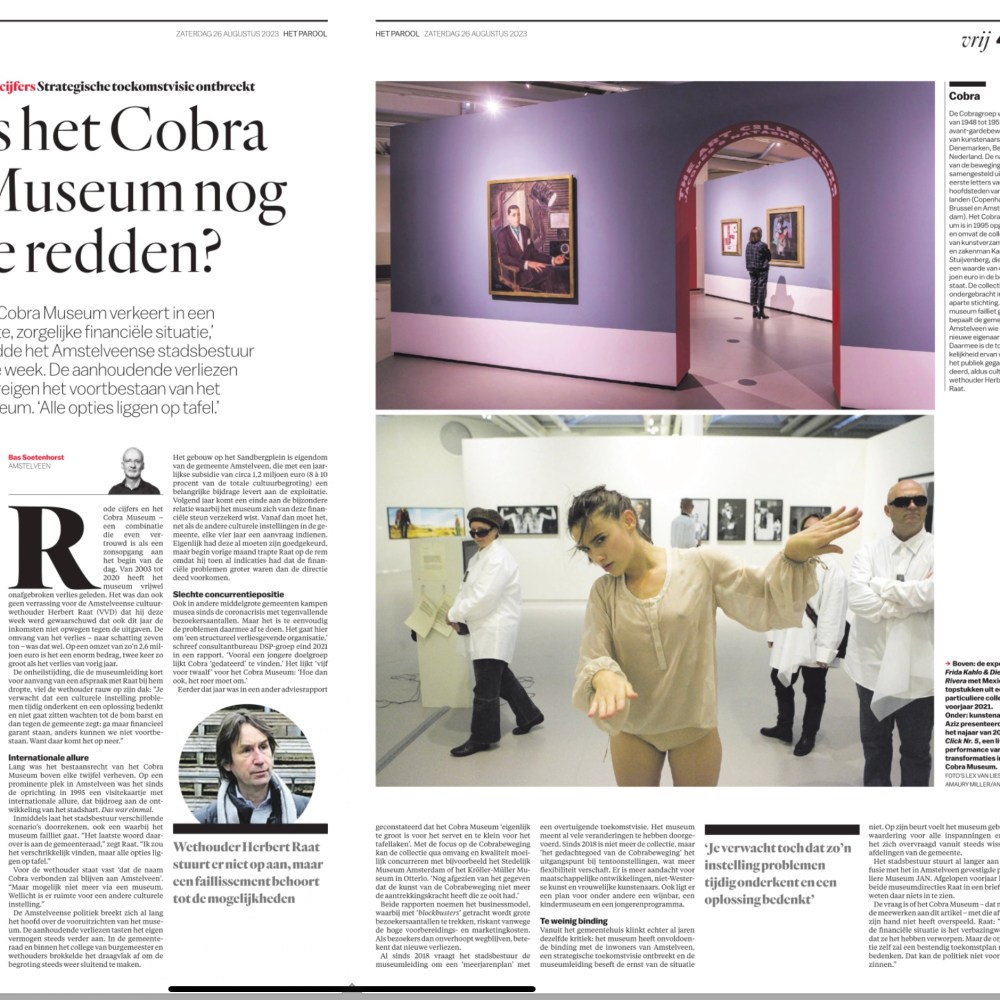 26-8-2023-Het Parool-artikel Bas Soetenhorst- Wethouder Herbert Raat over de financiële situatie Cobra Museum Dit delen:TweetVind-ik-leuk Aan het laden...
