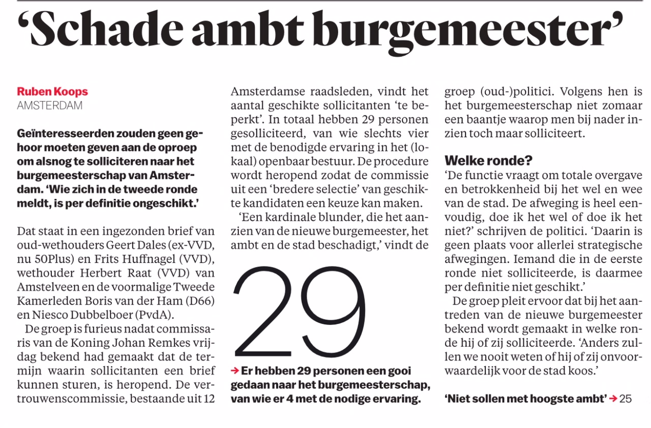 2018-21-5 Het Parool Ruben Koops over artikel Frits Huffnagel, Herbert Raat, Geert Dales, Boris van der Ham over de benoeming burgemeester Amsterdam Dit delen:TweetVind-ik-leuk Aan het laden...