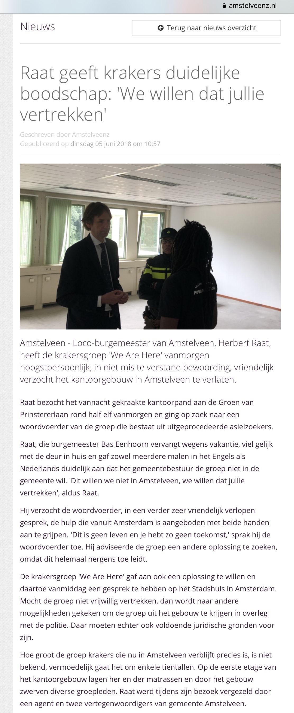 2018-5-6; Amstelveenz; wethouder Herbert Raat tegen we are here: kraken niet in Amstelveen Dit delen:TweetVind-ik-leuk Aan het laden...
