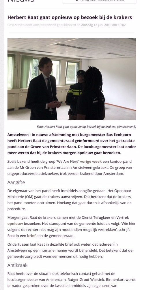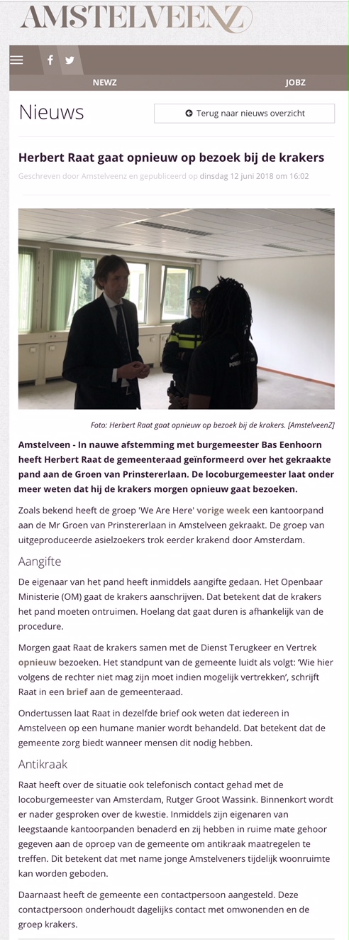 2018-12-6 Amstelveenz over bezoek Herbert Raat aan krakers We are Here Dit delen:TweetVind-ik-leuk Aan het laden...