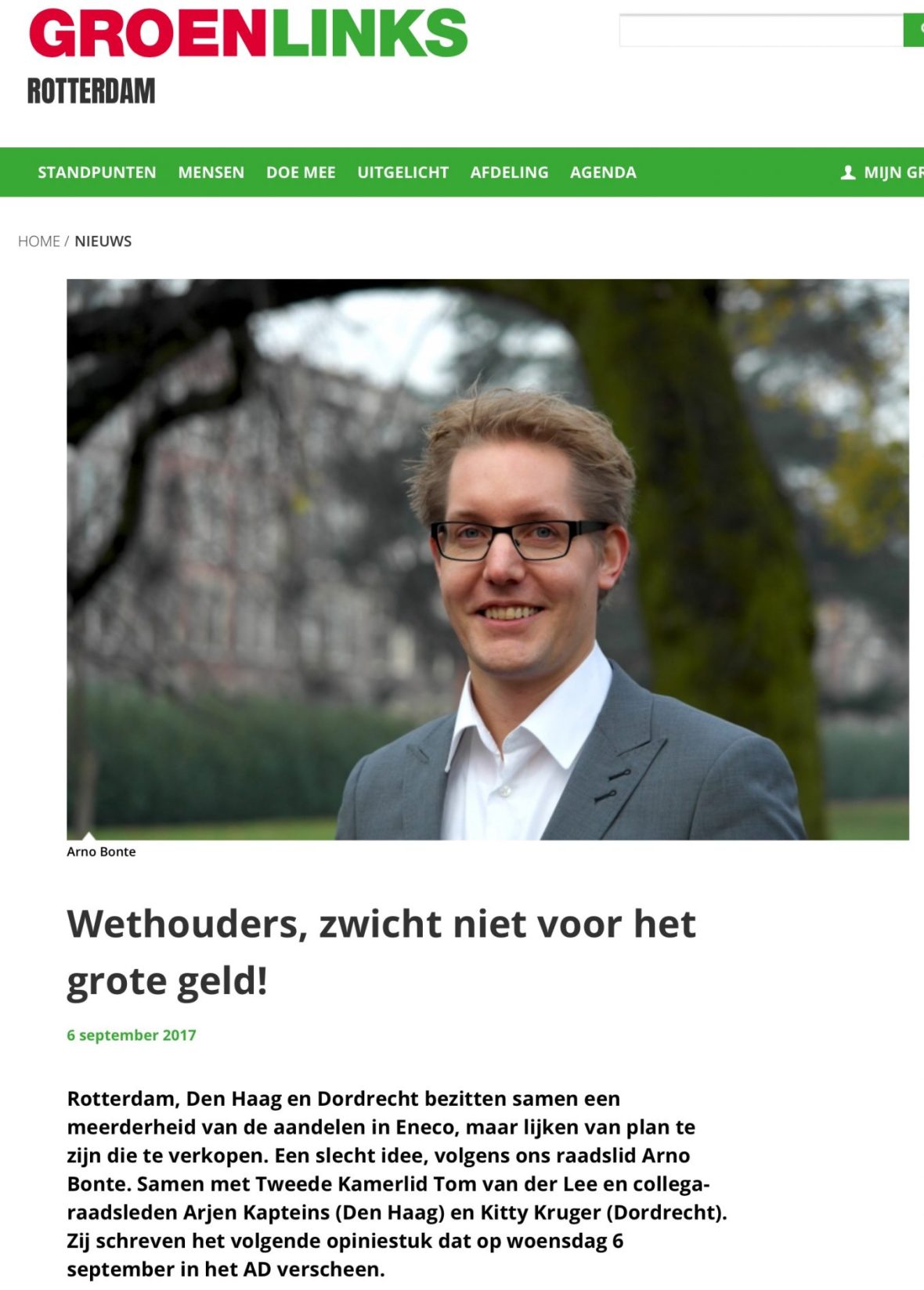 2017-6-9 Groen Links raadslid Arno Bonte roept voor de verkiezingen op Eneco niet te verkopen. Na de verkiezingen is hij wethouder in Rotterdam en verkoopt alsnog 1 van 2. Dit delen:TweetVind-ik-leuk Aan het laden...