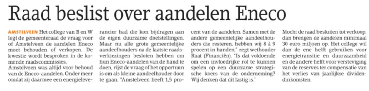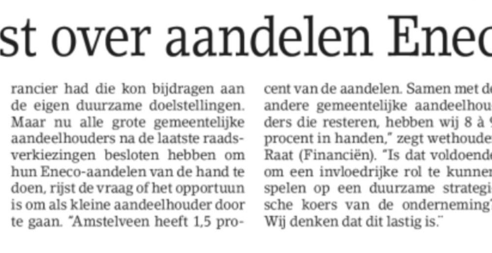 2018-5-9 Amstelveens Nieuwsblad Eneco aandelen Amstelveen Dit delen:TweetVind-ik-leuk Aan het laden...