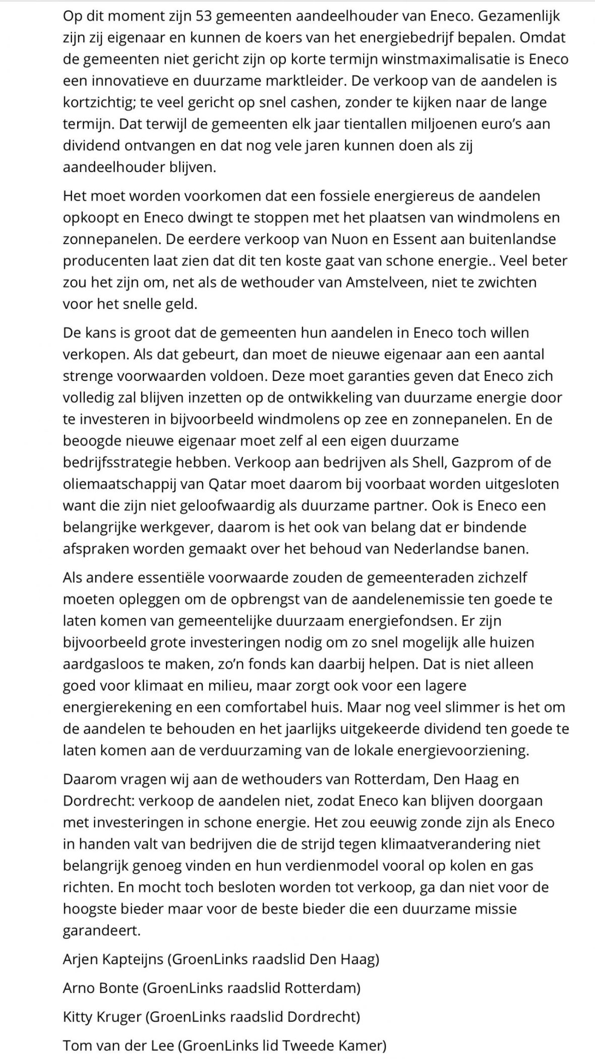 2017-6-9 Groen Links raadslid Arno Bonte roept voor de verkiezingen op Eneco niet te verkopen. Na de verkiezingen is hij wethouder in Rotterdam en verkoopt alsnog 2 van 2. Dit delen:TweetVind-ik-leuk Aan het laden...