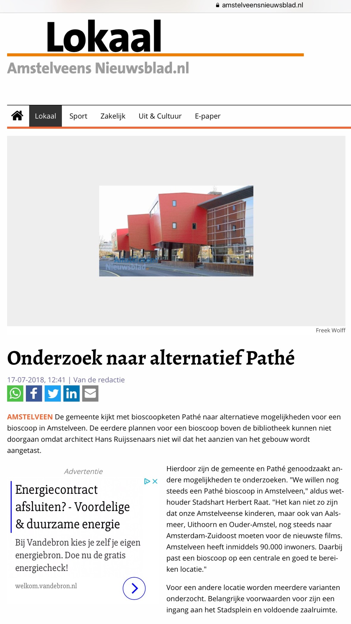 2018-17-7 Amstelveens Nieuwsblad site; Herbert Raat over Pathe in Amstelveen Dit delen:TweetVind-ik-leuk Aan het laden...