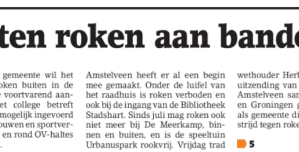 2018-8-8 Amstelveens Nieuwsblad: wethouder Herbert Raat over roken aan banden Amstelveen Voorpagina Dit delen:TweetVind-ik-leuk Aan het laden...