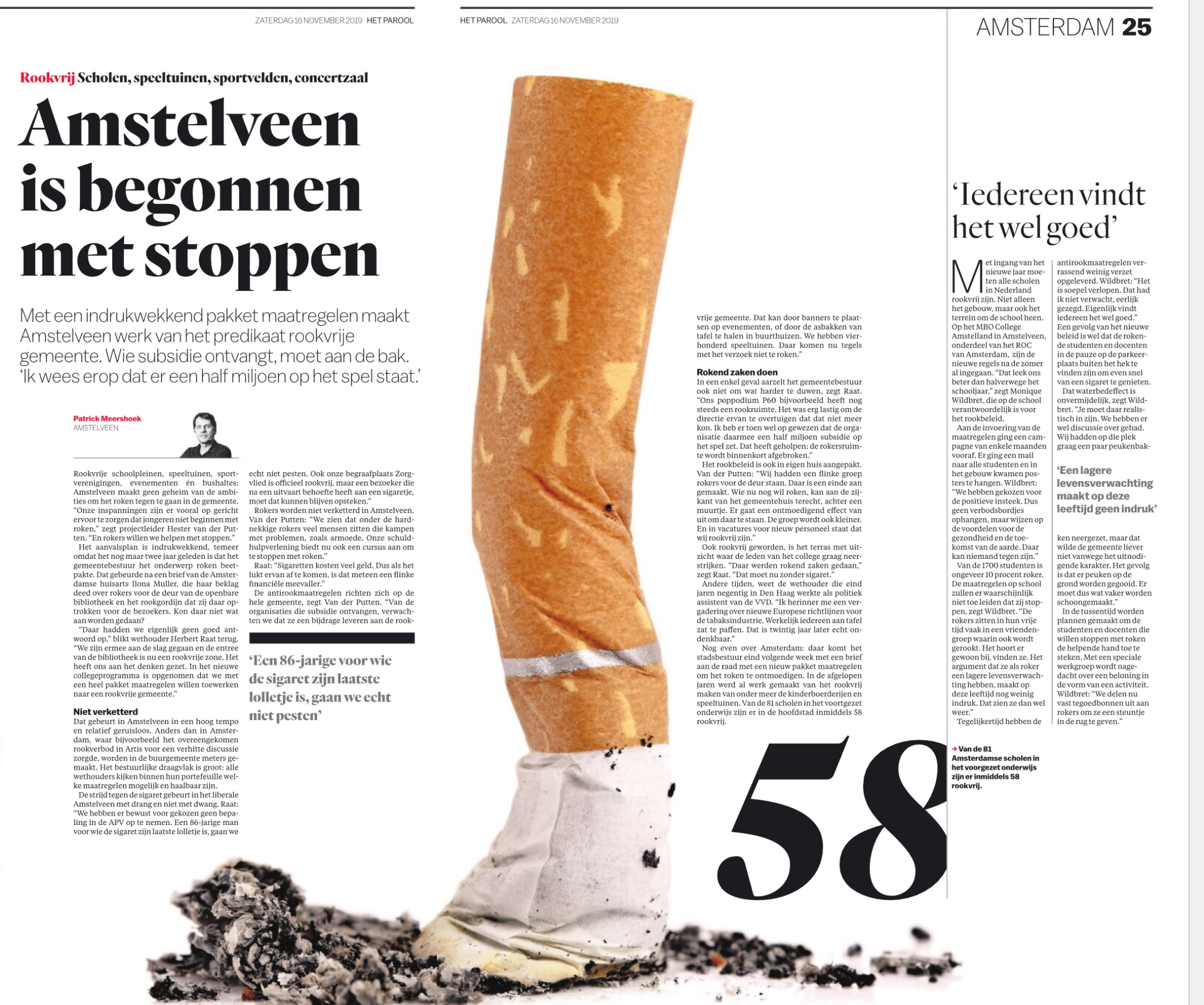 2019-17-11; Het Parool; herbert Raat over aanpak roken in Amstelveen Dit delen:TweetVind-ik-leuk Aan het laden...