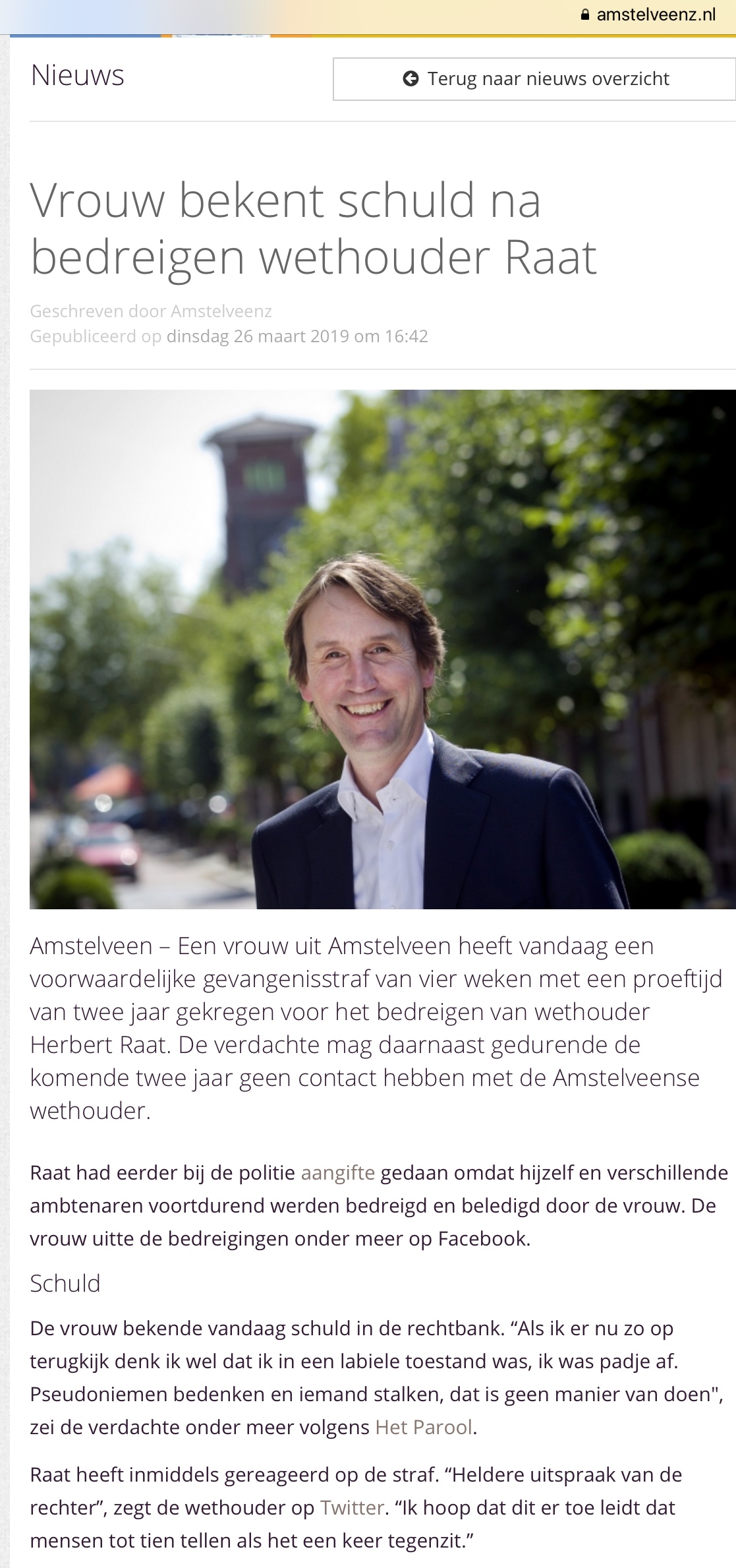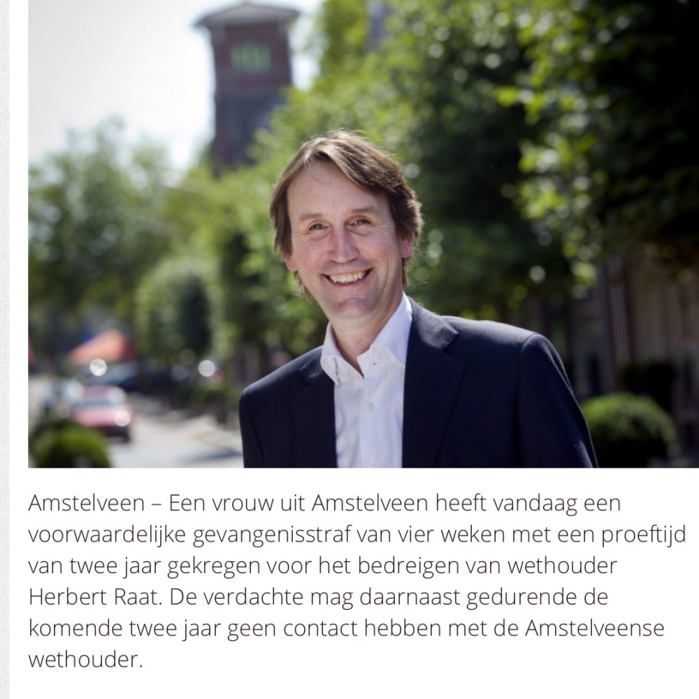 2019-26-3 AmstelveenZ over uitspraak rechter van een vrouw die wethouder Herbert Raat stalkte Dit delen:TweetVind-ik-leuk Aan het laden...