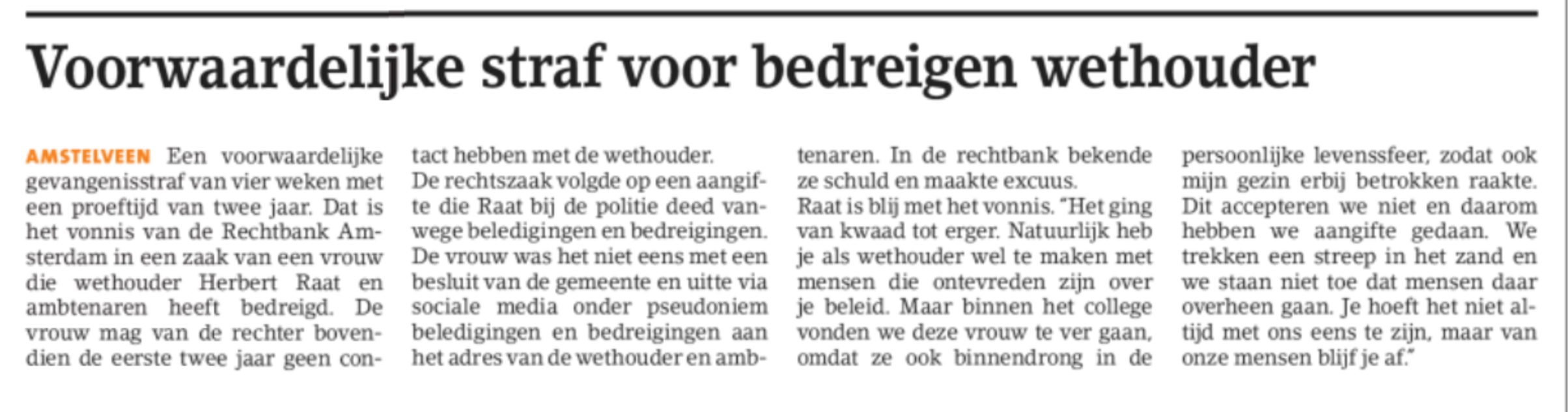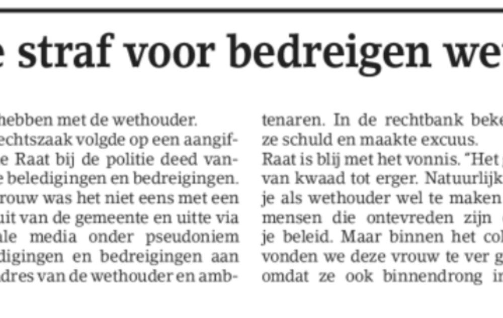 2019-3-3; Amstelveens Nieuwsblad; straf voor bedreigster Herbert Raat Dit delen:TweetVind-ik-leuk Aan het laden...
