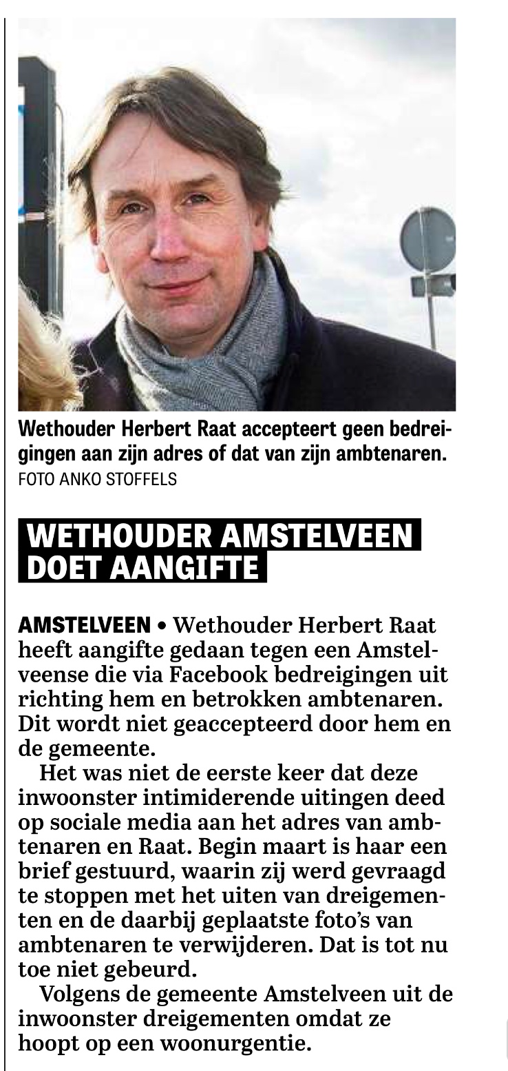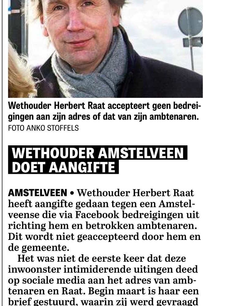 2018-31-8 De Telegraaf over aangifte wethouder Herbert Raat Amstelveen Dit delen:TweetVind-ik-leuk Aan het laden...