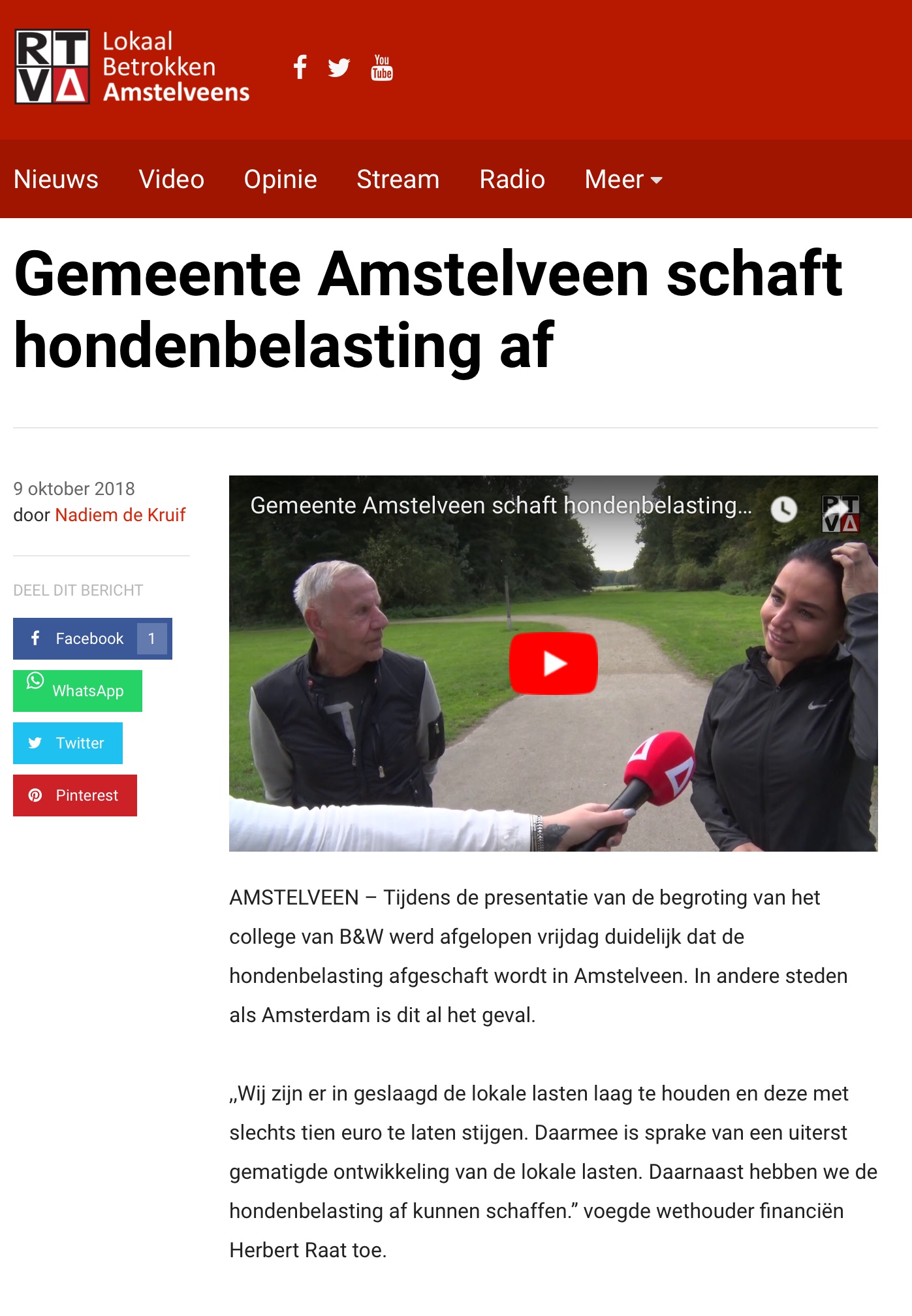 2019-9-10 RTVA Afschaffing hondenbelasting Amstelveen