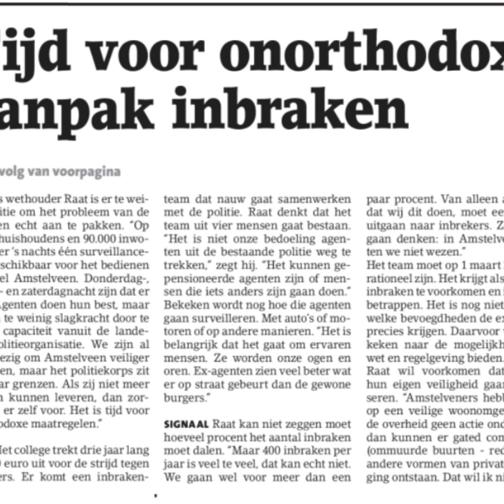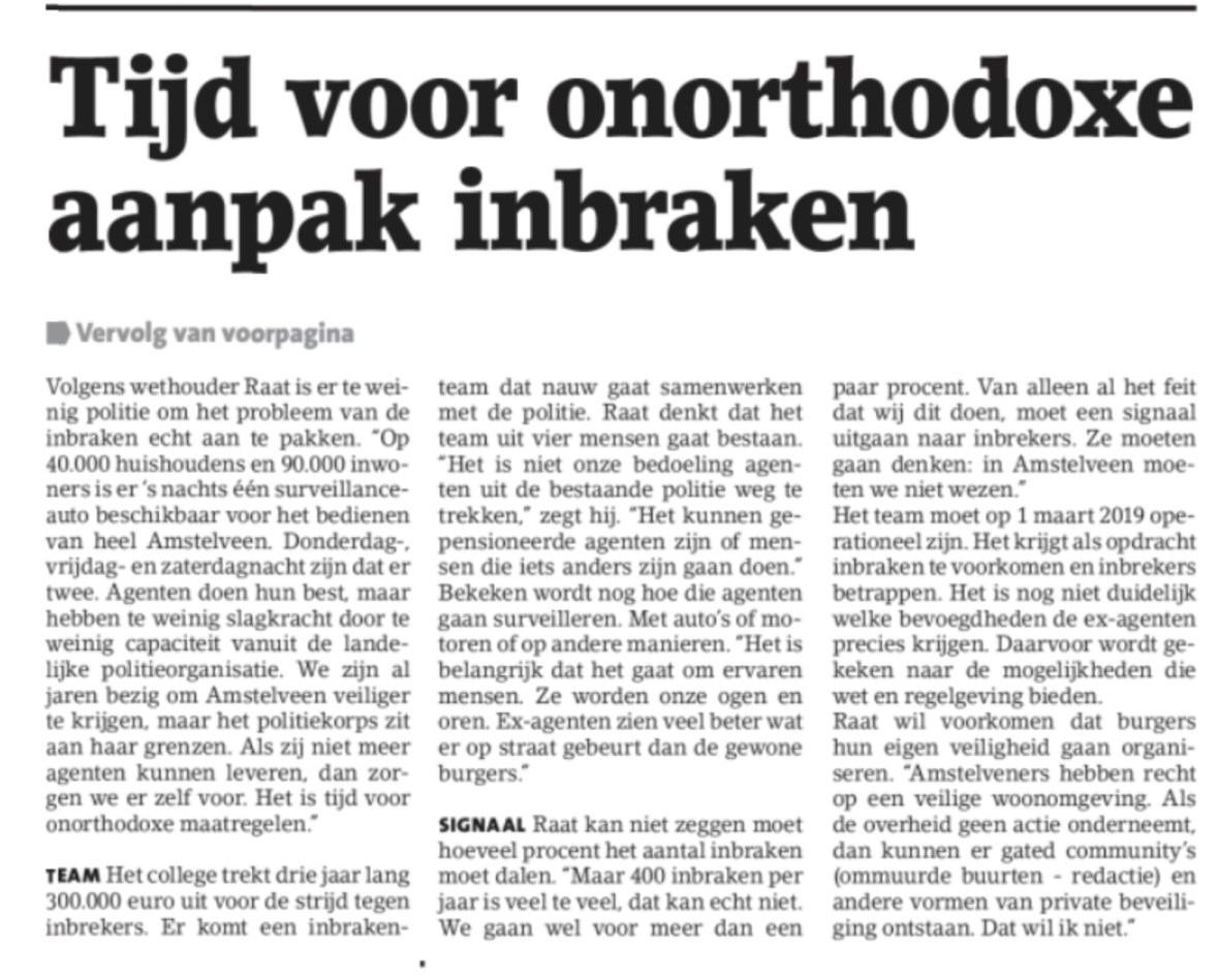 2018-14-11 Amstelveens Nieuwsblad: Herbert Raat over aanpak inbraken Amstelveen voorpagina aanpak inbraken 1 van 2 Dit delen:TweetVind-ik-leuk Aan het laden...