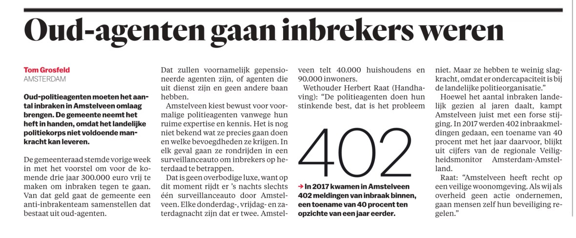 2018-13-11 het Parool: wethouder Herbert Raat over inzet agenten Amstelveen Dit delen:TweetVind-ik-leuk Aan het laden...