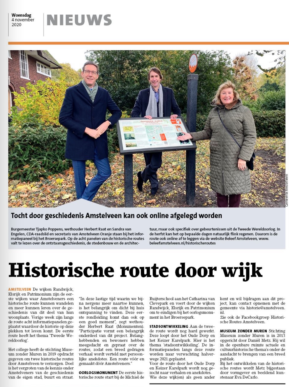 2020-4-11 Amstelveens Nieuwsblad: Herbert Raat, Tjapko Poppens, Sandra van Engelen en Daniel Metz presentatie historische routes Amstelveen Dit delen:TweetVind-ik-leuk Aan het laden...