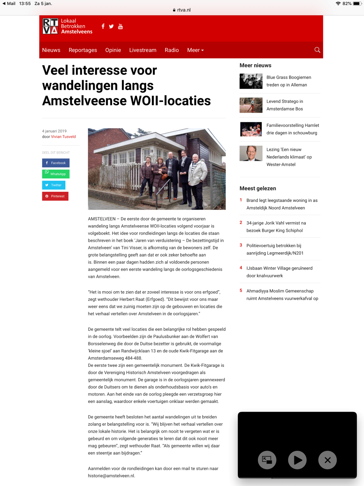 2019-RTVA: wethouder Herbert raat over de grote belangstelling vvor de Amstelveense WO2 geschiedenis Dit delen:TweetVind-ik-leuk Aan het laden...