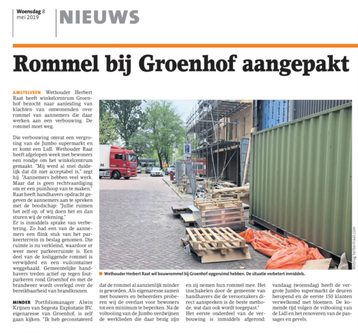 2019-8-5:Amstelveens Nieuwsblad; Herbert Raat over aanpak rommel Groenhof 2019-8-5:Amstelveens Nieuwsblad; Herbert Raat over aanpak rommel Groenhof Dit delen:TweetVind-ik-leuk Aan het laden...